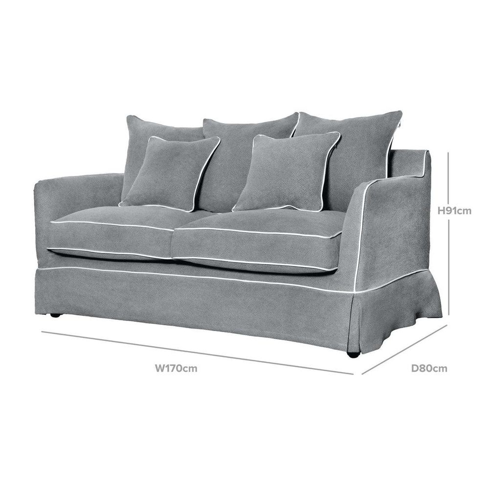 Transform your ordinary seating into a cozy retreat with our 2 Seat Slip Cover in Noosa Grey with White Piping. Crafted to perfection, this slip cover is designed to seamlessly pair with our Noosa 2 Seat Sofa Base and Cushion Inserts, offering a quick and effortless way to elevate your living space while providing practical protection for your sofa.