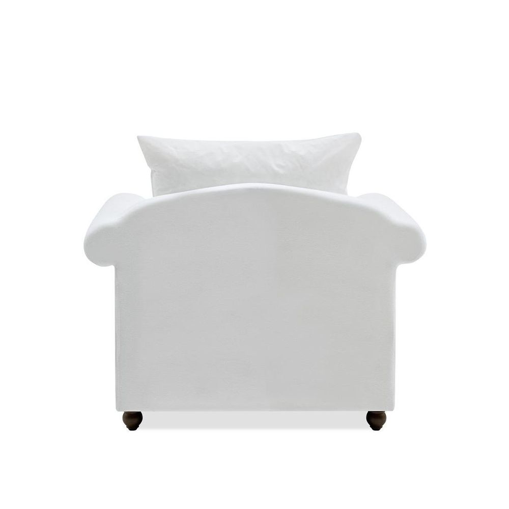 Get the perfect canvass that will effortlessly elevate your lounge space with our Avalon Naked Arcmchair Base. Crafted for versatility, this base allows you to mix and match with various fabrics from our Avalon Armchair Slip Cover collection, ensuring a personalized touch to suit your style. Compact yet cozy, this piece is tailored for small spaces and airy aesthetics, promising a lavish lounging experience right in the comfort of your own home. The base is EPE foam. The high-density foam has been tested to meet Certi-PUR requirements, complies with VOC testing under the EU RoHS Directive (EU) 2015/863, and can meet the CA117 flammability standard. The product and all its materials are free from PFAS, PFOS, and PFTE. Formaldehyde testing has been completed for all wood and glue components. All fabrics used in the product are OEKO-TEX® Standard 100 compliant.