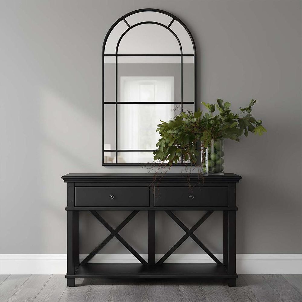 With its two spacious drawers and convenient low shelf, our Sorrento 2 Drawer Console in Black offers ample storage for your everyday essentials while making a striking statement in your hallway, living room, or entryway. The intricate cross detailing adds a touch of sophistication, seamlessly marrying classic and contemporary design elements to enhance your modern home decor.
