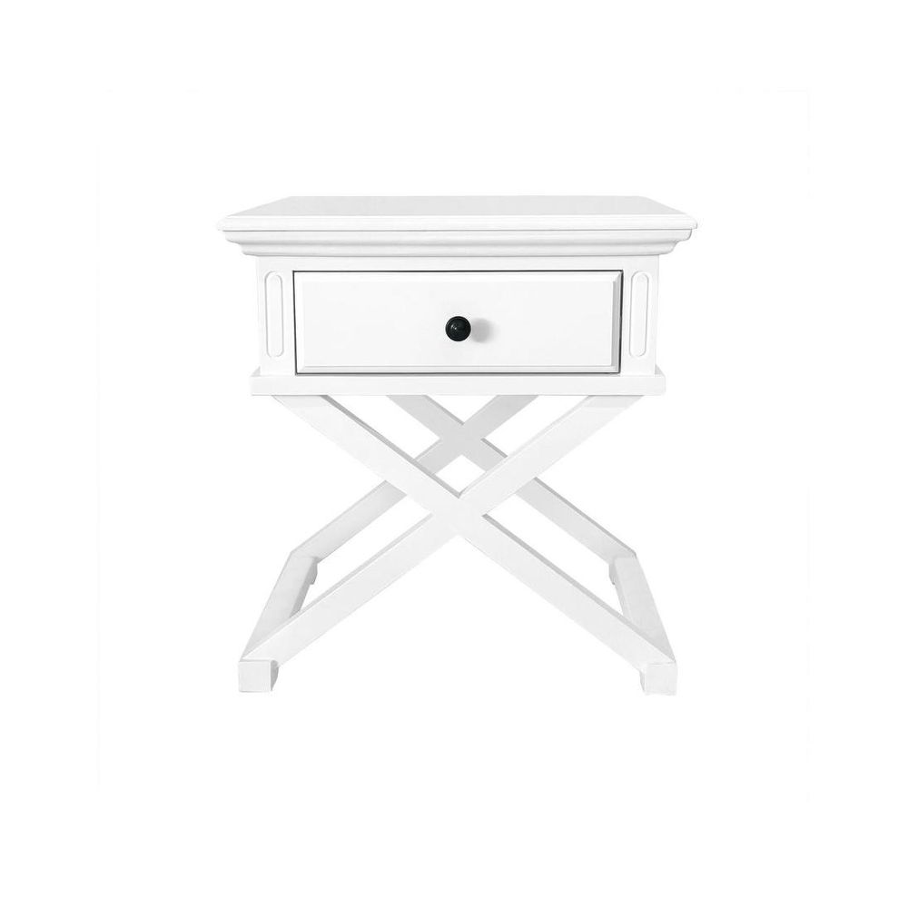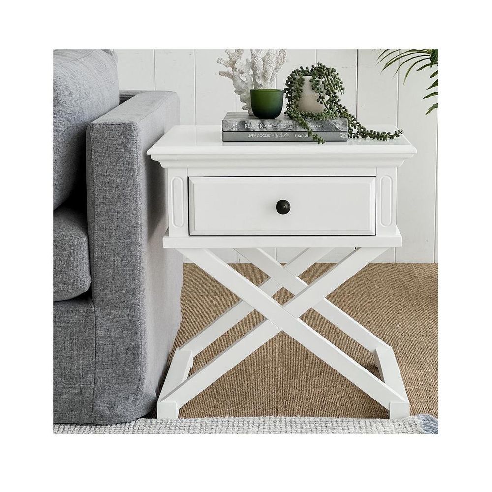 Sorrento Cross Leg Hamptons BedSide Table W/Drawer White