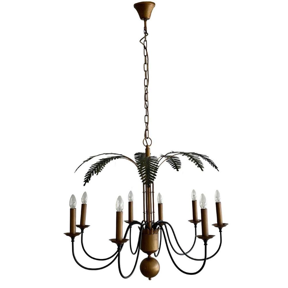 This playful Palm Chandelier evokes resort style and tropical vibes. From the central stem comes 8 arms, each hosting a bulb, plus the leaves of a palm tree. It delivers a beautiful sense of balance and will look great in your living space.