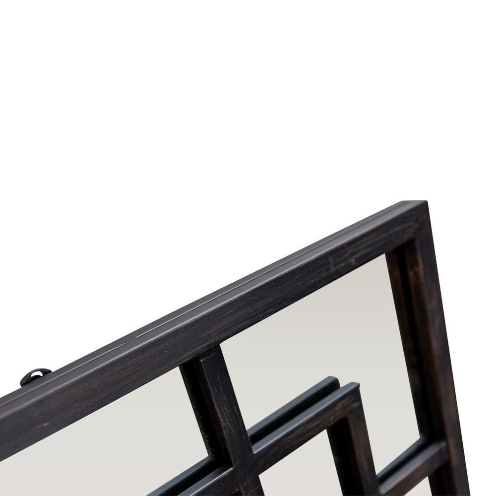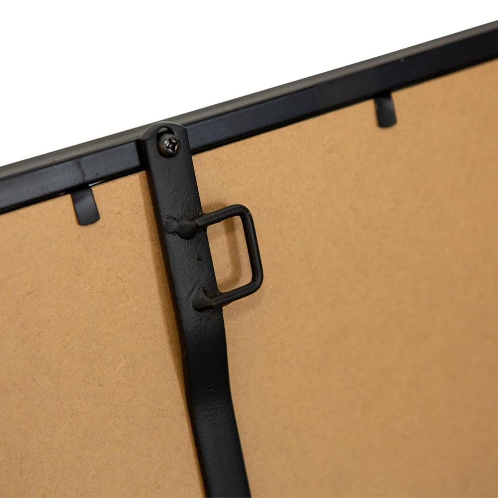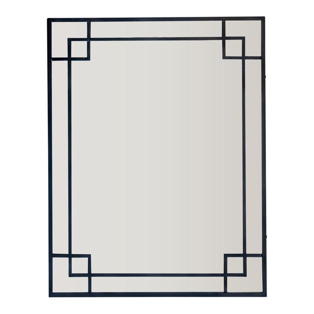Crafted with a black iron frame with a surprise corner detailing, this mirror commands attention wherever it's placed. Whether adorning the wall of your entryway, bedroom, or living room, its elegant corner detailing adds a touch of understated glamour to your surroundings. Perfect for checking your outfit on your way out the door or creating the illusion of more space in smaller rooms, this mirror effortlessly combines style and functionality.