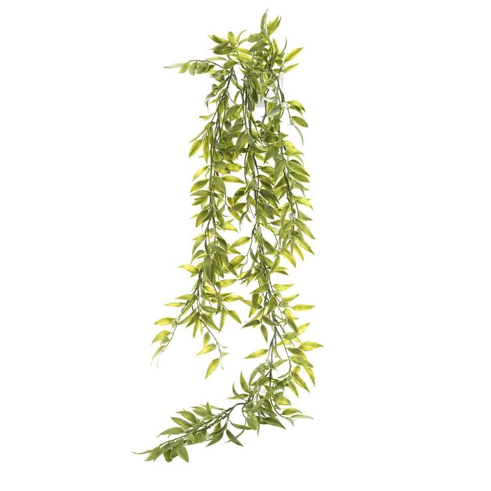 Hang up some leafy love with our artificial Leaf Hanging Spray, where every leaf tells a story of lush adventure. With a cascade of lance-shaped leaves in varying shades of green, this spray brings the beauty of nature indoors with effortless charm. Hang it from ceilings or drape it over shelves to create an instant oasis of greenery that will transport you to botanical bliss. Thanks to cutting-edge technology, these lifelike leaves are as realistic as they come, ensuring lasting allure without any wilting or scent. Hypoallergenic and cost-effective, it's the perfect choice for adding a touch of sophistication to any space.