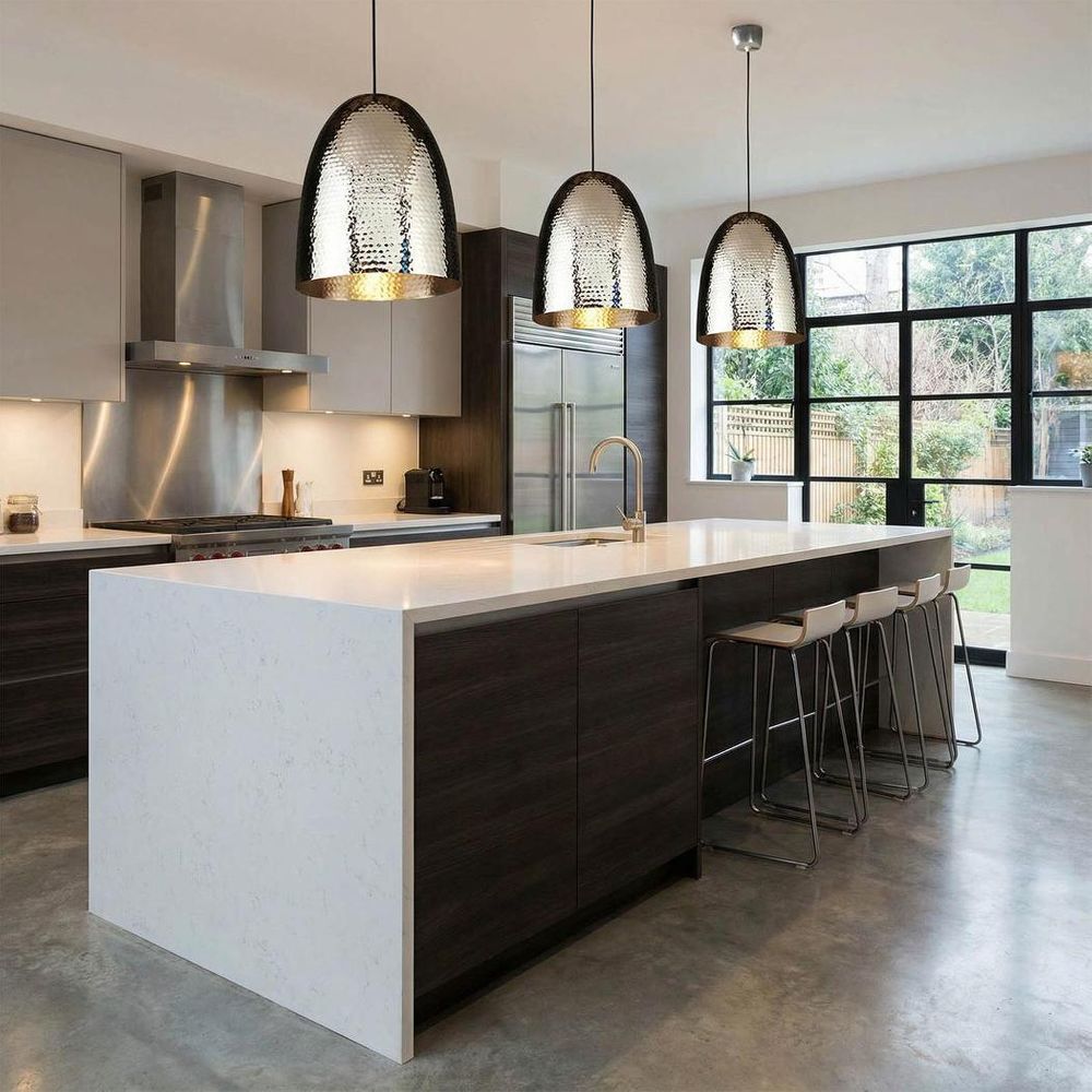 Our Dolce lamps are beautifully handcrafted and finished with beaten metallic silver outside and inside. The black cable cord is adjustable for perfect positioning in your living space. Style this beautiful piece of decorative lighting over your dining table or in a set of three above your kitchen bench for a spectacular lighting statement. This light is certain to bring a sense of undeniable modern interior style to your room. ADDITIONAL FEATURES • Standard Australian domestic fitting • Ceiling rose has a matching finish with the base • 1.5m cord height is adjustable • Lamp holder takes a standard E27 light bulb at 40 watt max [download spec sheet]