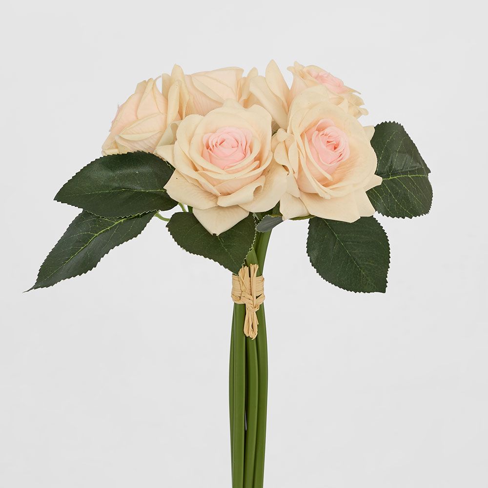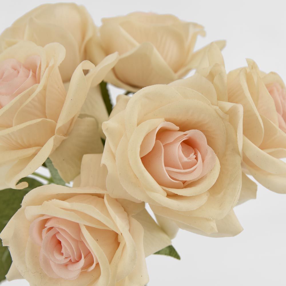 Get ready to be swept off your feet by the romantic allure of our artificial Rose Bouquet in White with new and hyperrealistic real touch technology. This stunning bouquet boasts white blooms with ruffled petals, elegantly accompanied by dark green serrated leaves. Whether you place it in a vase to adorn a cozy nook, accentuate a table centerpiece, or add a touch of elegance to weddings and events, this bouquet is sure to steal the spotlight. They're long-lasting and hypoallergenic, so you can enjoy their beauty without any sneezy setbacks. And with no wilting or unpleasant odors, they're the cost-effective, hassle-free solution to your floral needs.