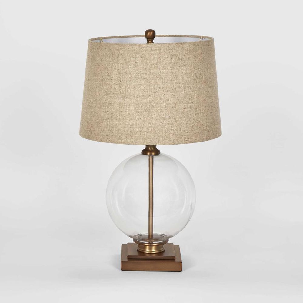 Ivy Small Antique Brass And Glass With Natural Linen Shade