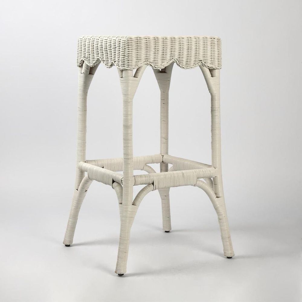 Masterfully hand woven & wrapped in natural wicker, our Belle rattan bar stool is sturdy & strong. With a generous seat & pretty scallop skirt, this comfortable & lightweight stool is perfect for your next gathering & indoor living.