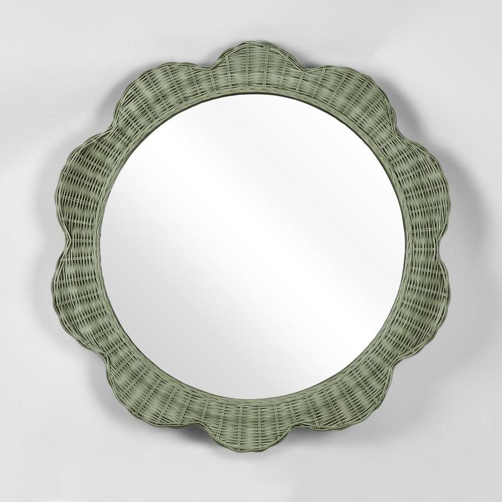 Belle Rattan Scallop Round Mirror Green