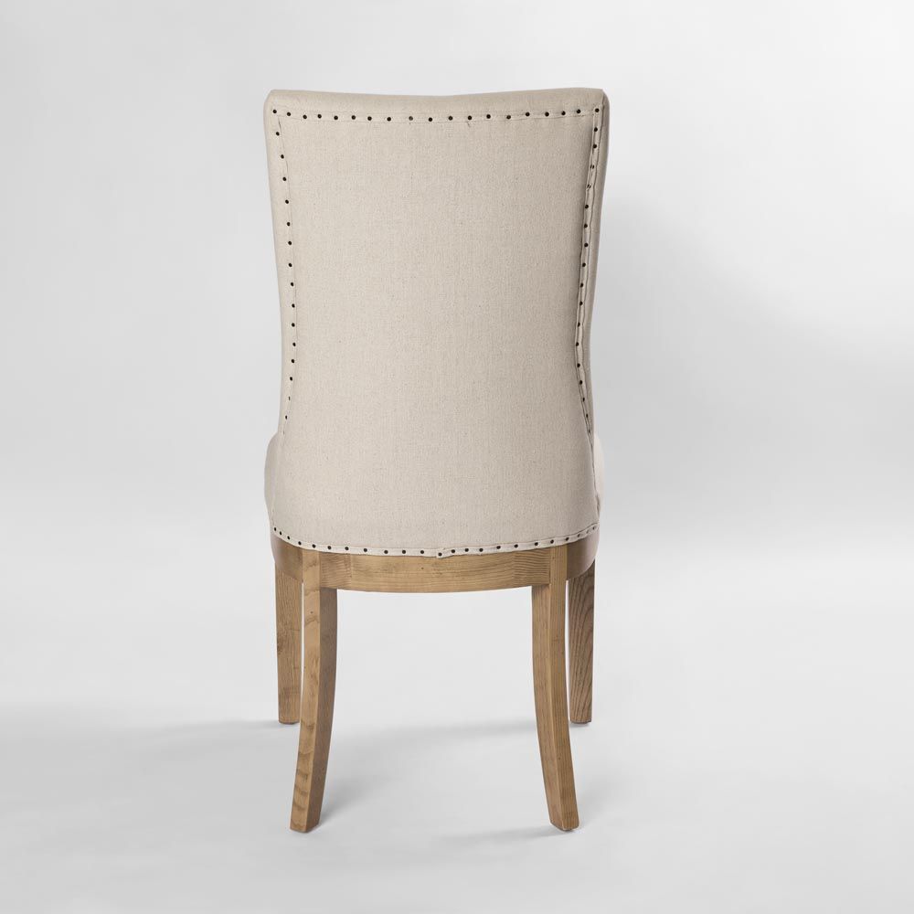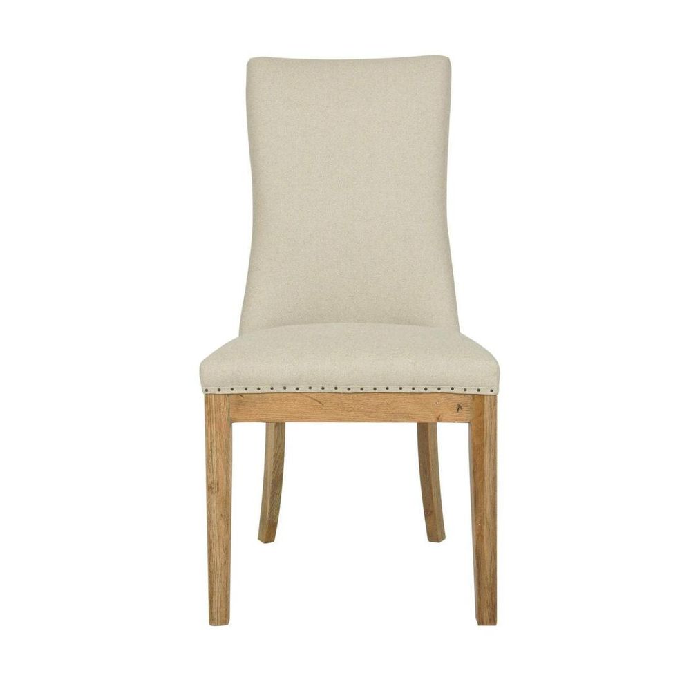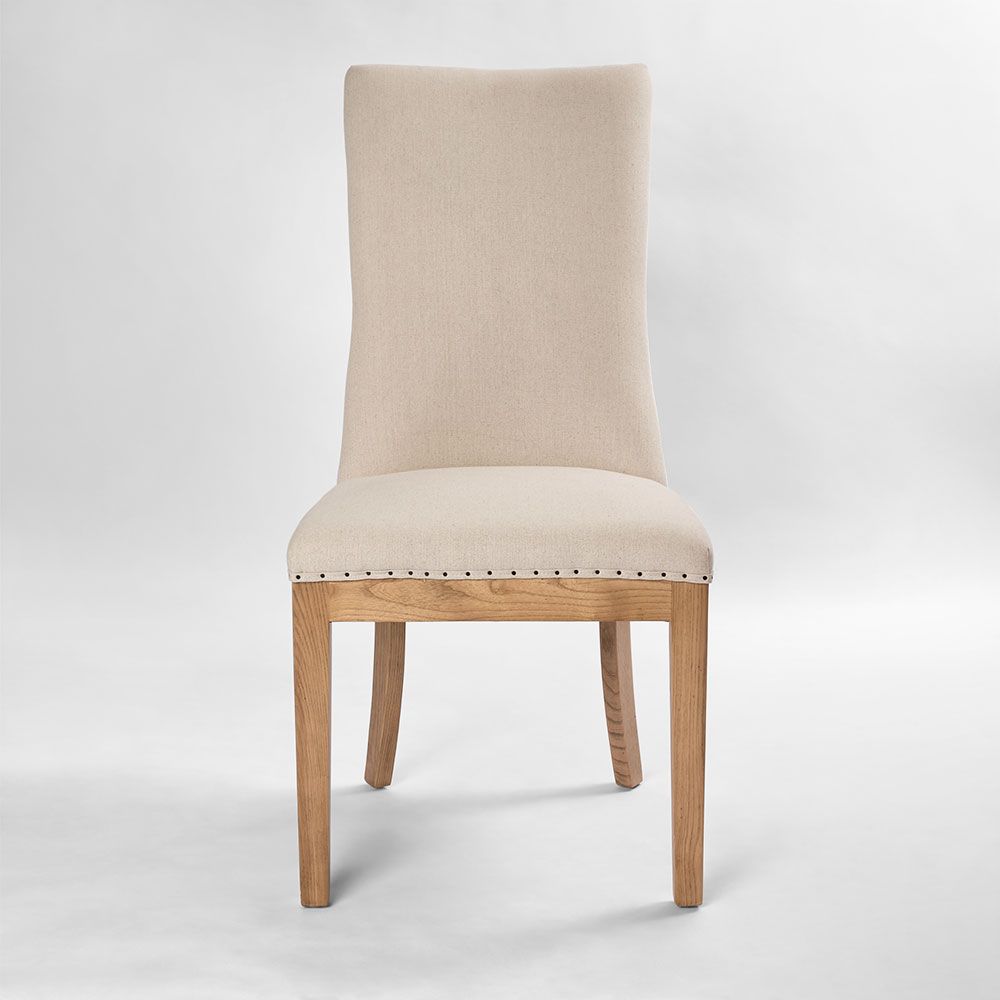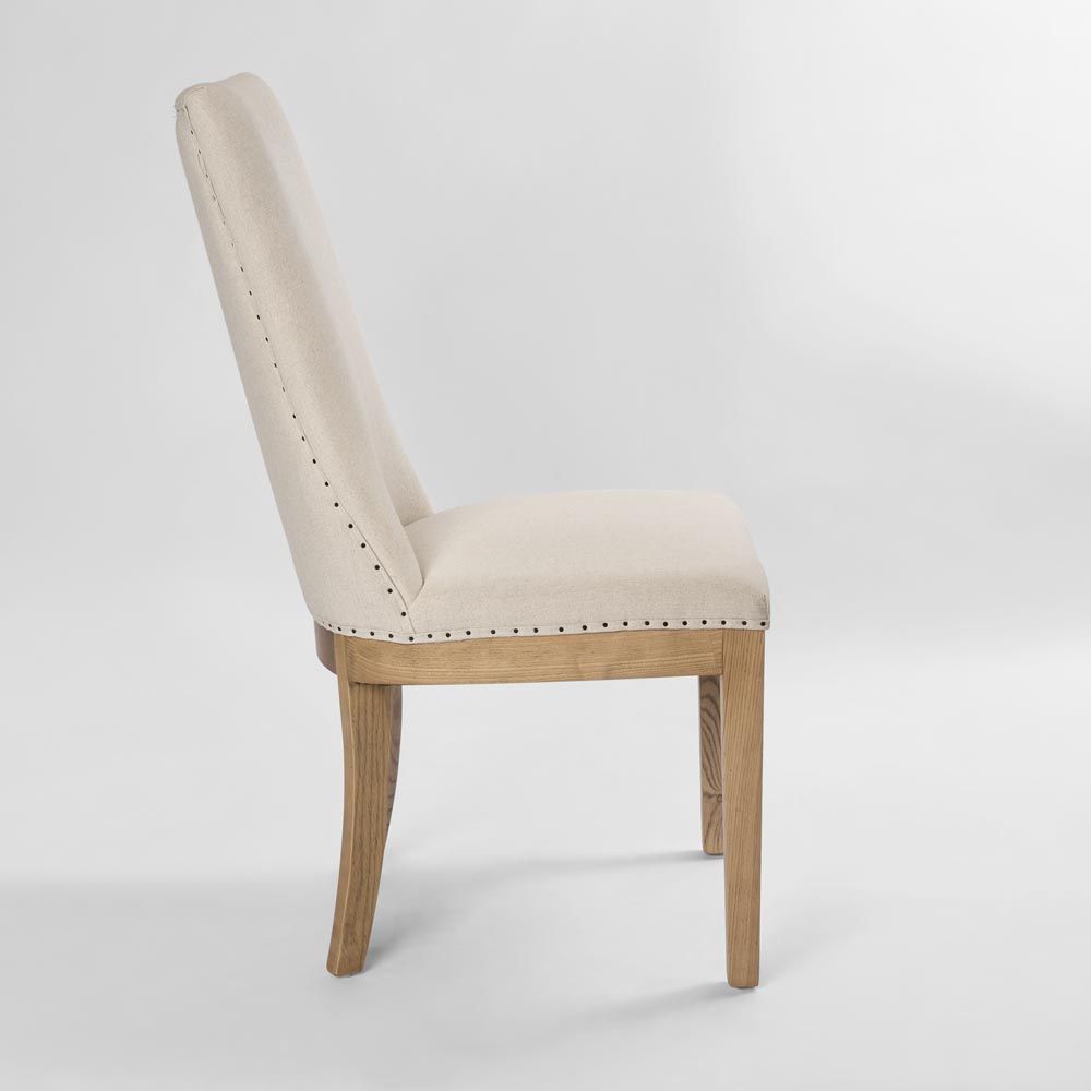 Oakwood Hamptons Linen Dining Chair Natural W/ Studs