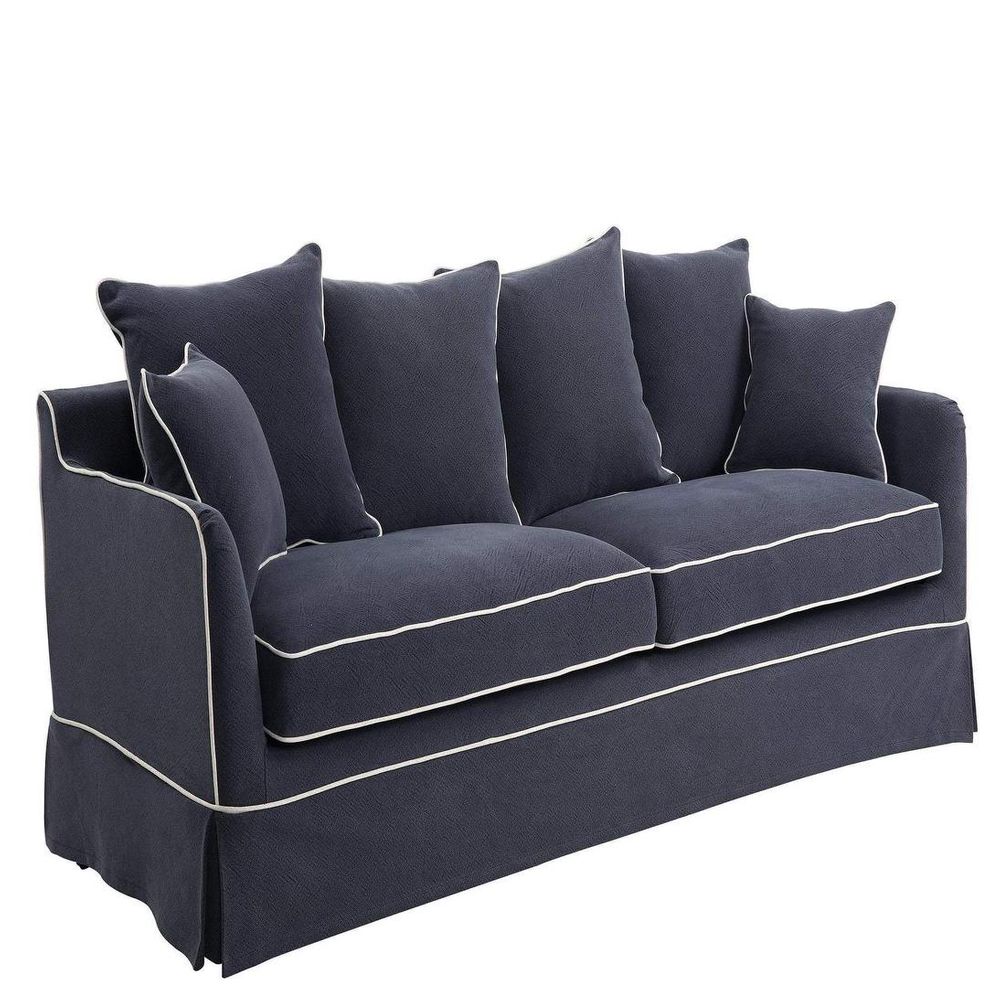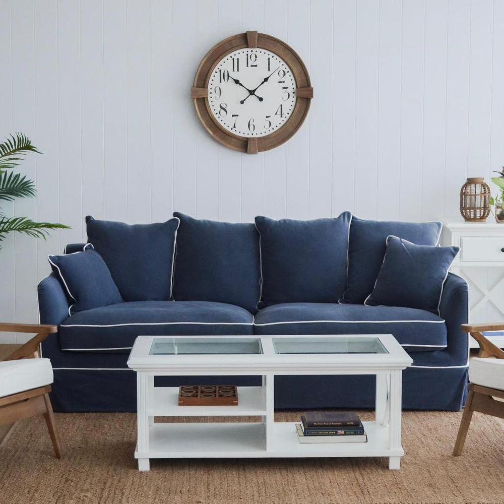 Slip Cover Only - Noosa Hamptons 3 Seat Sofa Navy W/White Piping
