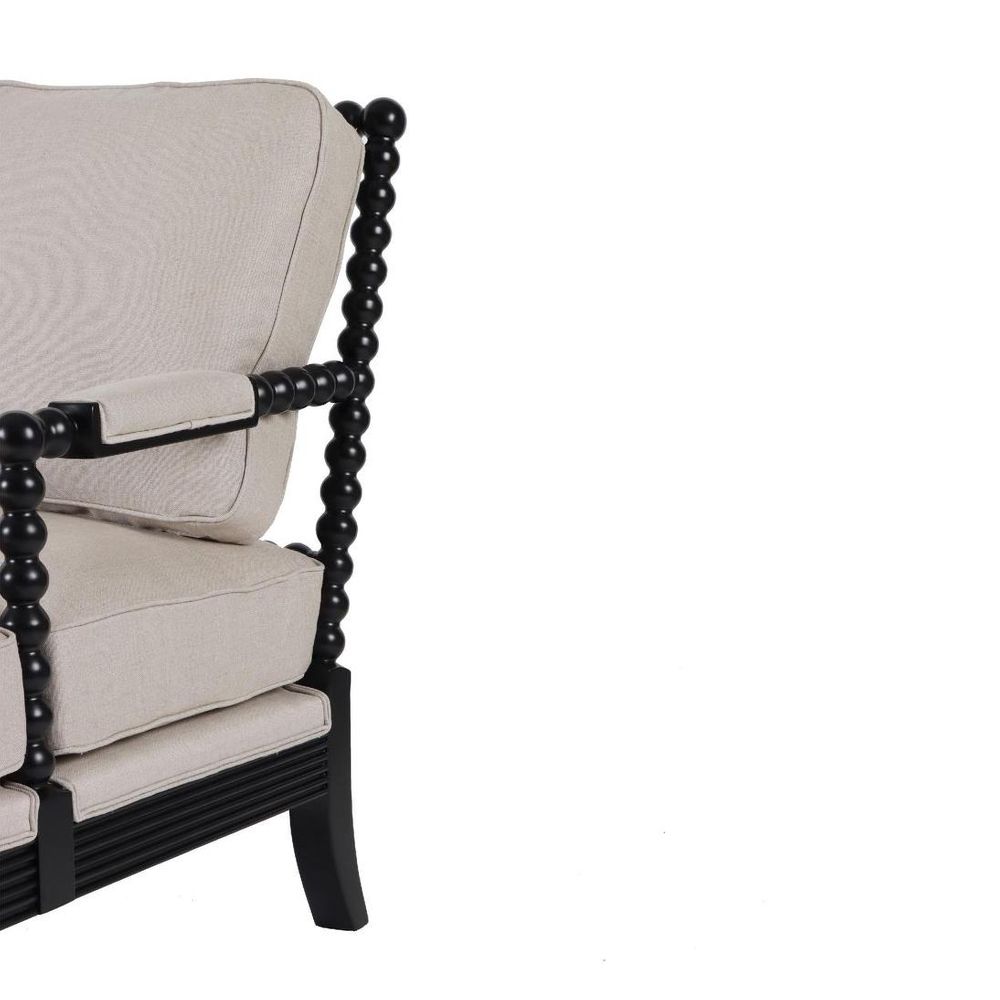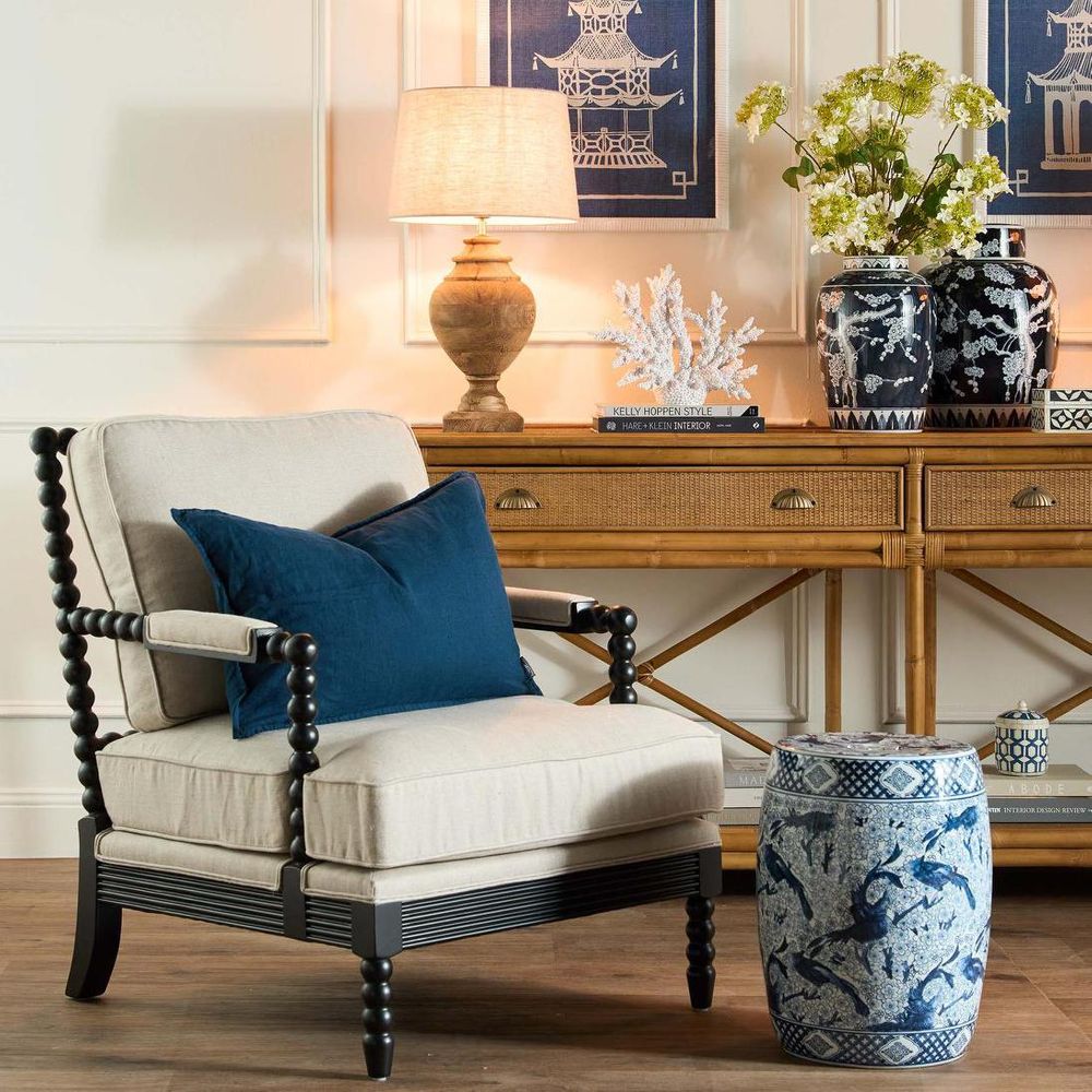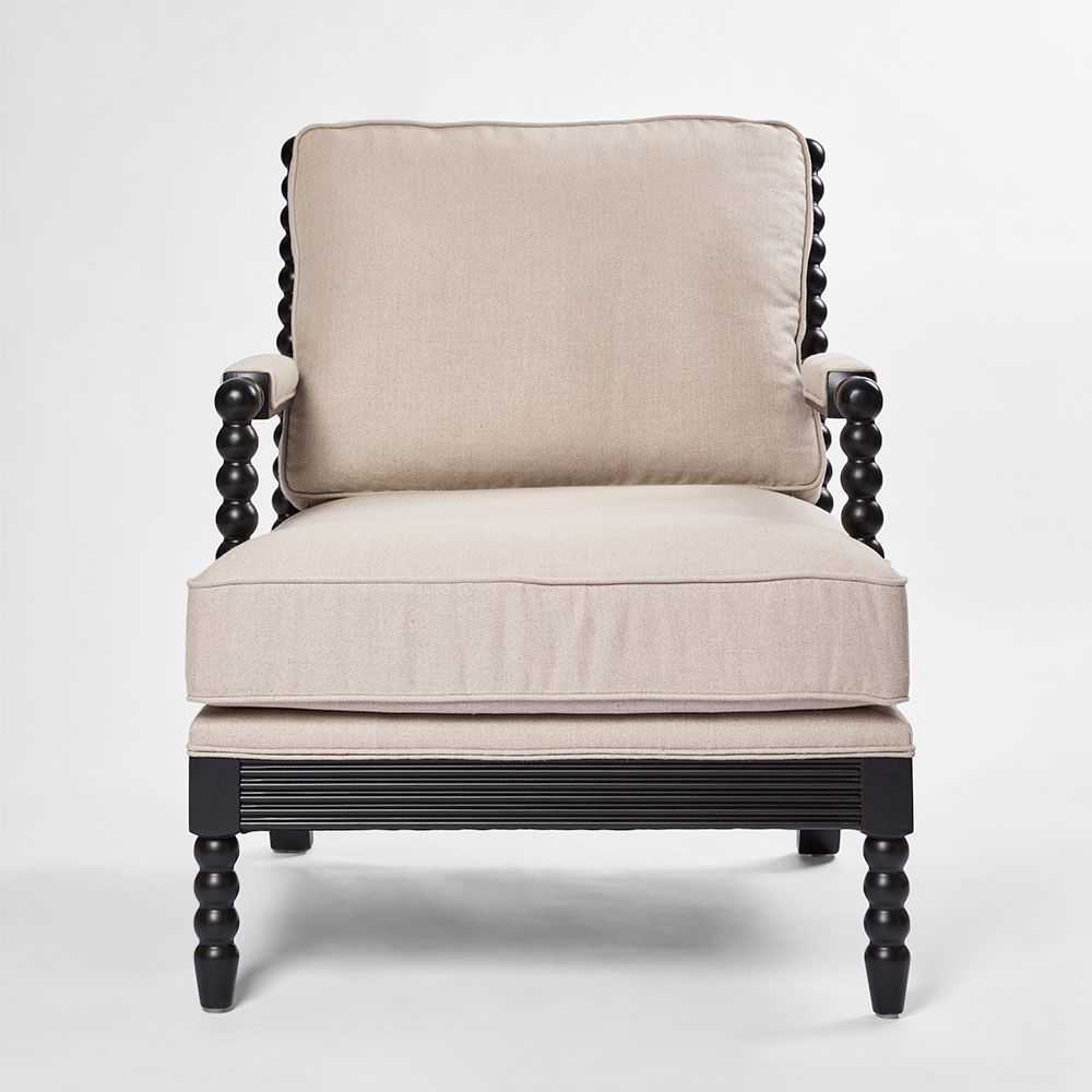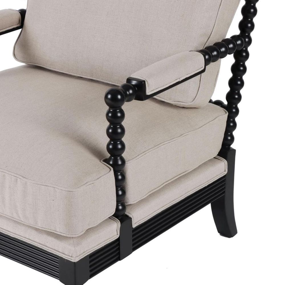 Take a seat in timeless elegance with our Elizabeth Bobbin Hamptons Armchair in Black. Meticulously crafted with a robust wooden frame and exquisitely carved bobbin legs, this armchair transcends mere furniture, it's a declaration of discerning style. Sink into luxurious comfort with its foam-filled seat and back cushions, accented with elegant piping, while the upholstered armrests provide an inviting sanctuary for moments of relaxation and reverie.