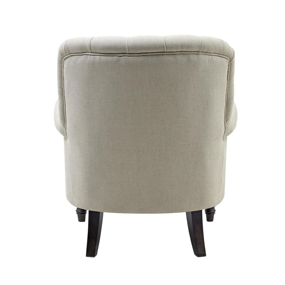 Maurice Natural Linen Blend Hamptons Buttoned Armchair W/Studs Dark Legs