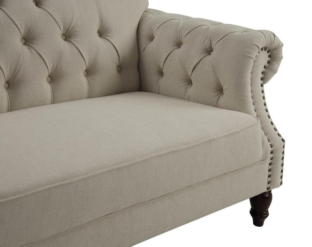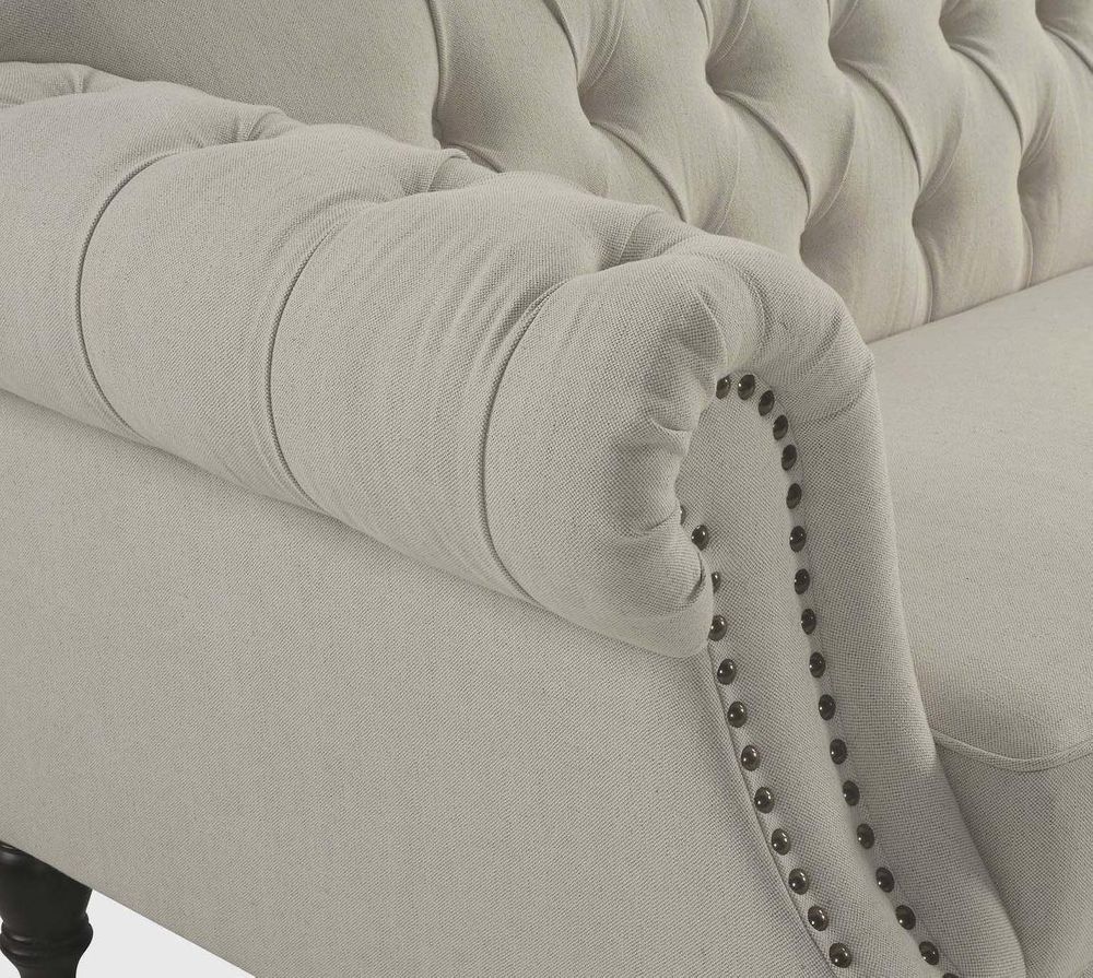 Vaucluse 3 Seat Hamptons Buttoned Sofa Beige Linen Blend