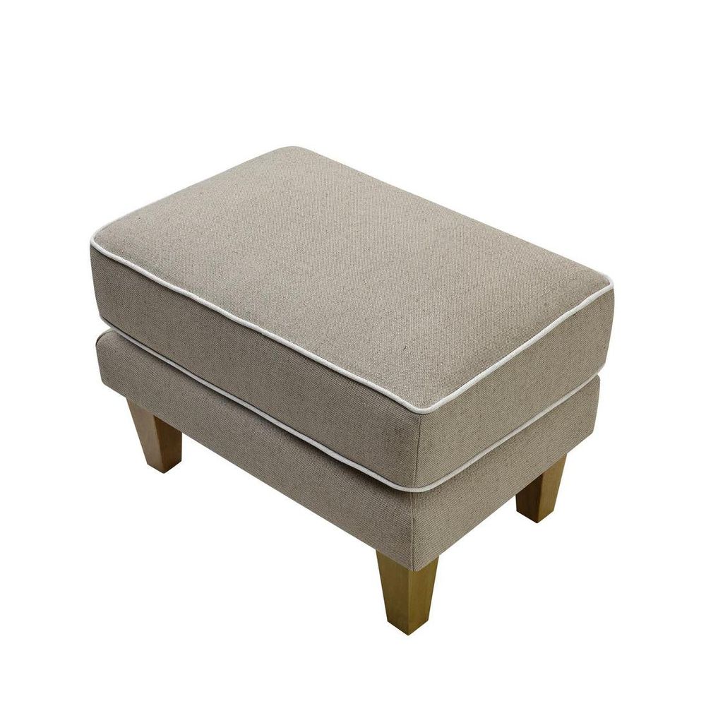 Complete the look of your Bondi collection with our Bondi Ottoman in Natural with White Piping, perfect for resting tired feet or as an extra seating option. With its classic design and wooden tapered legs, this ottoman is more than just a place to rest your feet, it's a statement piece in its own right. Pair it with our Bondi Armchair or any other piece from our Bondi collection for a cohesive and effortlessly chic look that will transform your living space into a haven of relaxation.