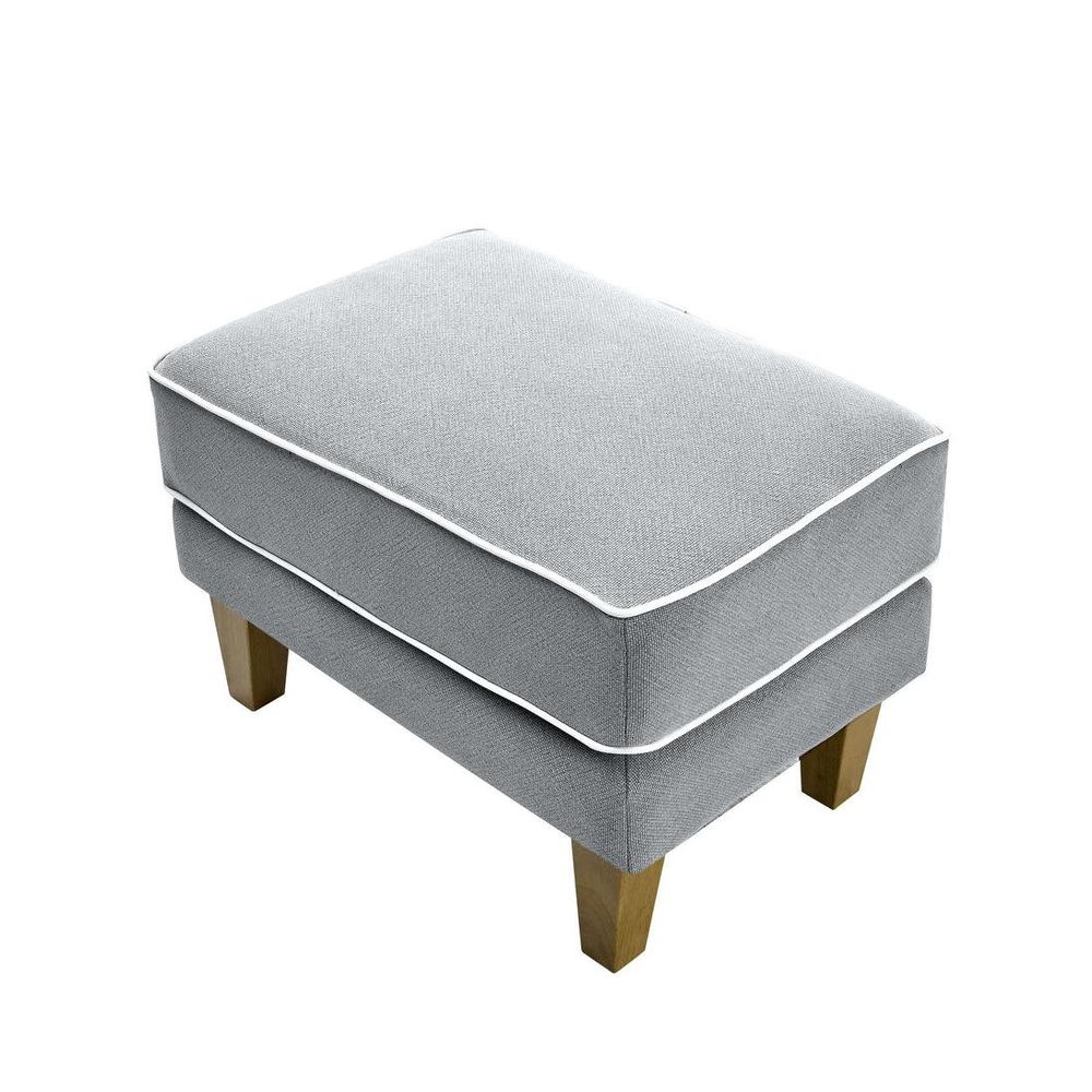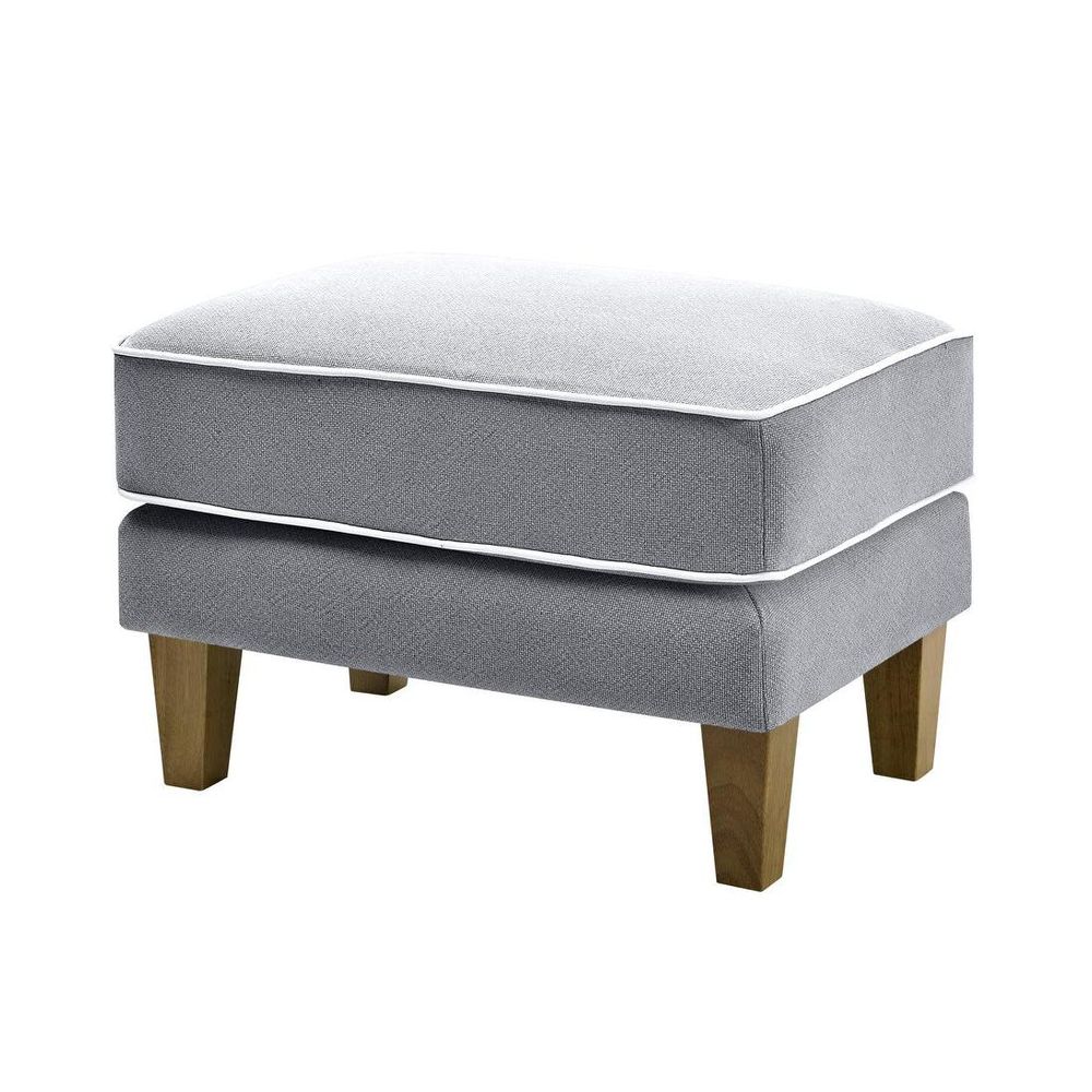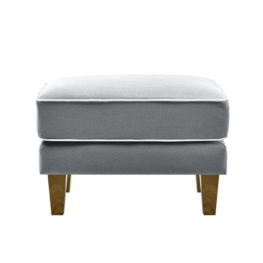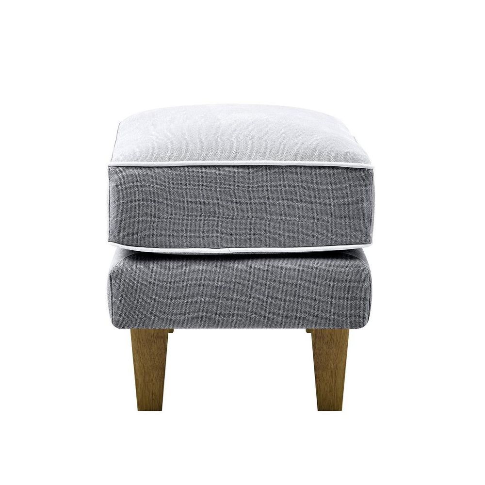 Complete the look of your Bondi collection with our Bondi Ottoman in Grey with White Piping, perfect for resting tired feet or as an extra seating option. With its classic design and wooden tapered legs, this ottoman is more than just a place to rest your feet, it's a statement piece in its own right. Pair it with our Bondi Armchair or any other piece from our Bondi collection for a cohesive and effortlessly chic look that will transform your living space into a haven of relaxation.