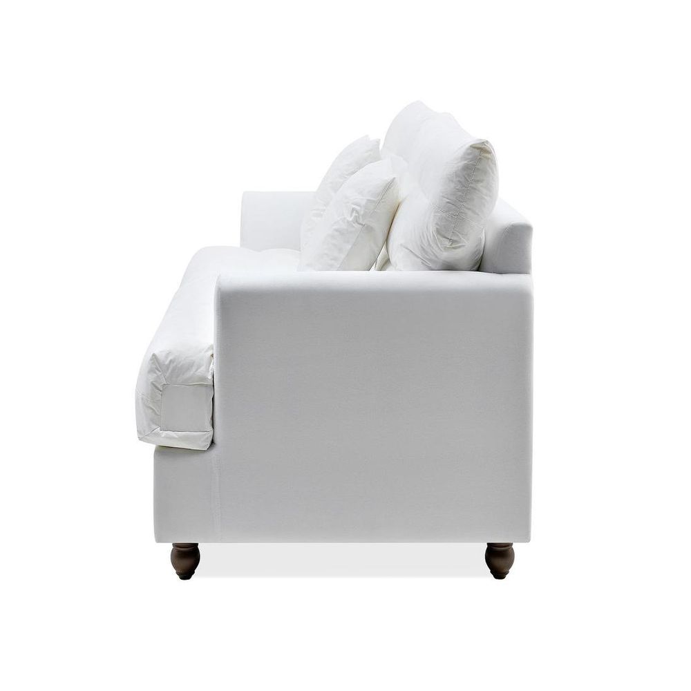 Create an inviting atmosphere for relaxation and entertainment alike with our Byron 3 Seat Naked Sofa Base and Cushion Inserts. Crafted with versatility in mind, this base invites you to personalize your space by mixing and matching fabrics from our Byron Slip Cover collection. With its airy aesthetics, this sofa promises a luxurious lounging experience, making it the perfect centerpiece for your home.