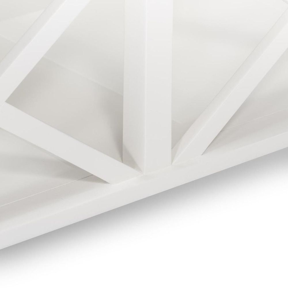 Keep your space clutter-free and effortlessly chic with our Sorrento Large Glass Coffee Table in White. This coffee table features a sleek structural design adorned with elegant cross detailing, making it a stunning focal point for any contemporary living space. Elevate your decor with its spacious glass top, offering ample surface area for drinks, decor, or your favorite coffee table books. Plus, with its convenient built-in storage, this table seamlessly combines style with functionality.