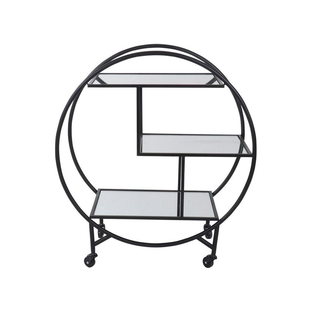 Elevate your hosting game with our Black Bar Trolley Mirror Shelves, a chic and versatile addition to any home bar or entertaining area. With its striking black finish and sleek circular design, this trolley exudes contemporary sophistication while offering ample storage space for all your bar essentials. Whether placed in the living room, dining area, or even on the patio, it's sure to be a conversation starter and a focal point of your gatherings.