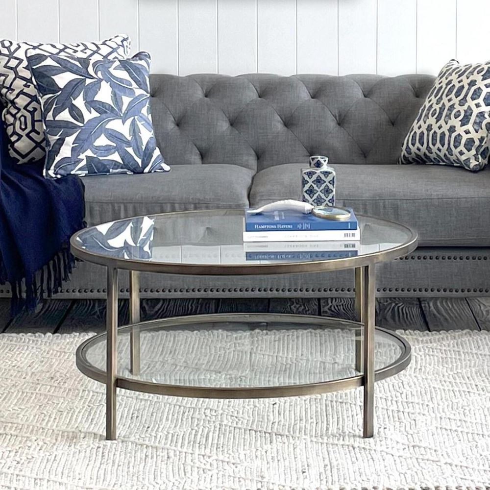 Say cheers to sophistication with our Palladium Glass and Brass Coffee Table, where modern elegance meets timeless appeal. Crafted from sleek glass and adorned with an iron frame finished in brass, this table exudes contemporary charm. Its low shelf not only adds functionality but also offers a stylish display space for your favorite coffee table essentials. Perfect for elevating any living room or lounge area with a touch of refined glamour.