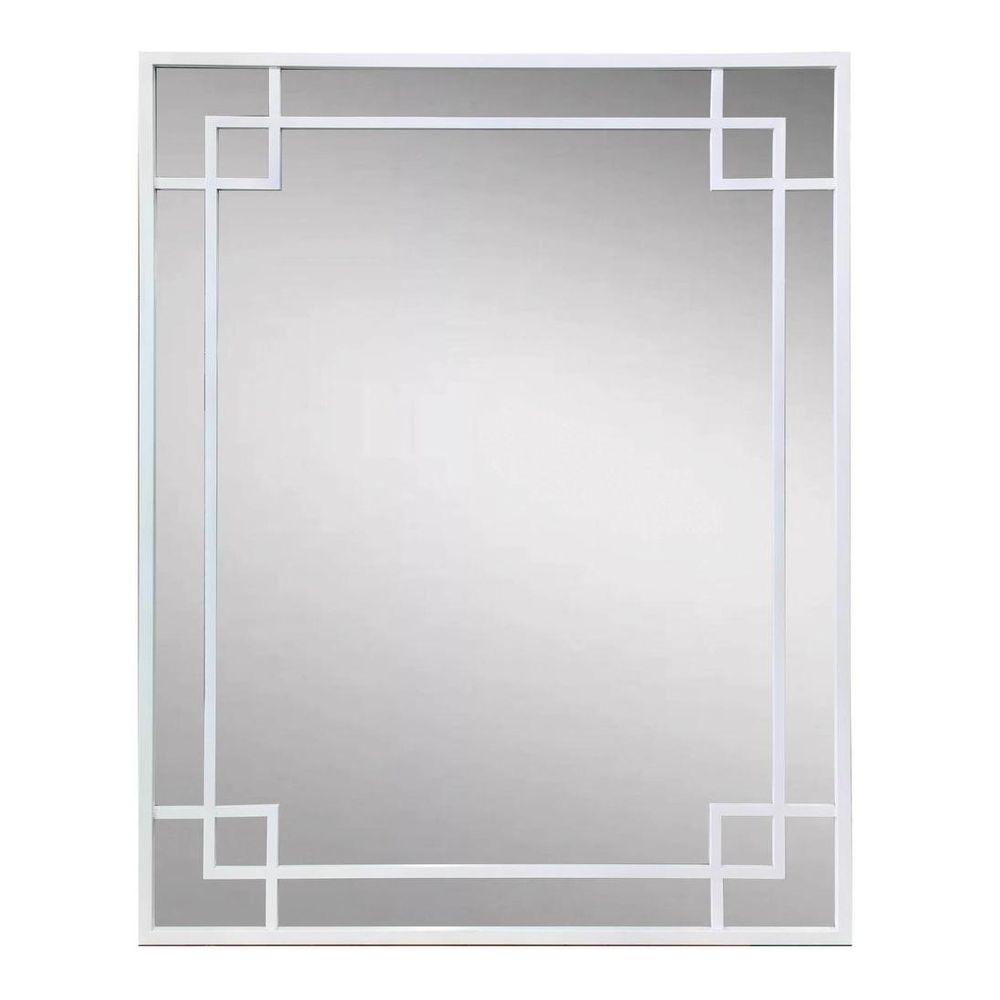 Crafted with a white iron frame with a surprise corner detailing, this mirror commands attention wherever it's placed. Whether adorning the wall of your entryway, bedroom, or living room, its elegant corner detailing adds a touch of understated glamour to your surroundings. Perfect for checking your outfit on your way out the door or creating the illusion of more space in smaller rooms, this mirror effortlessly combines style and functionality.