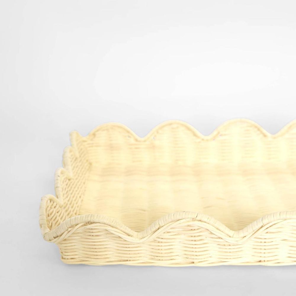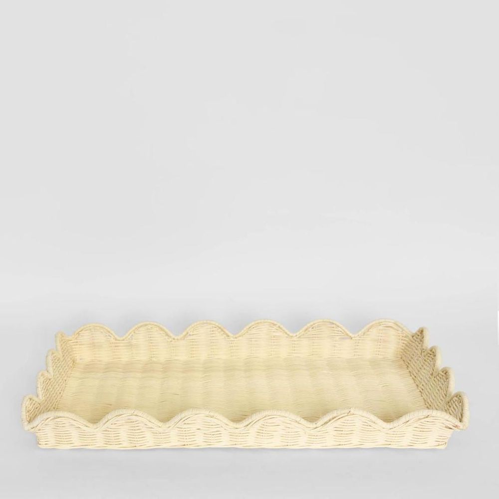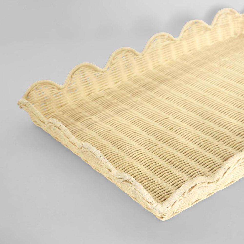 Entertain in style with our Belle rattan tray. Delight your guests with our lovingly hand woven wicker with scallop-edged detail. Serve your favourite drinks & nibbles or use it to store your keys, wallet or phones. Not suitable for Outdoor use. Please note: Rattan is not designed for full outdoor use. If placed outdoors or even in covered outdoor areas, it may weather, fade, or change over time due to exposure to sunlight and moisture. We recommend indoor use or placing it in well-protected areas.