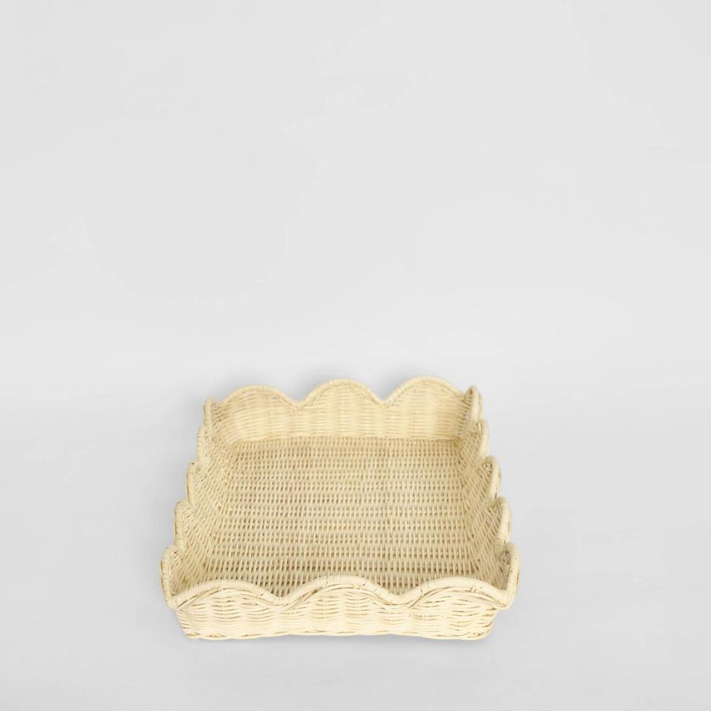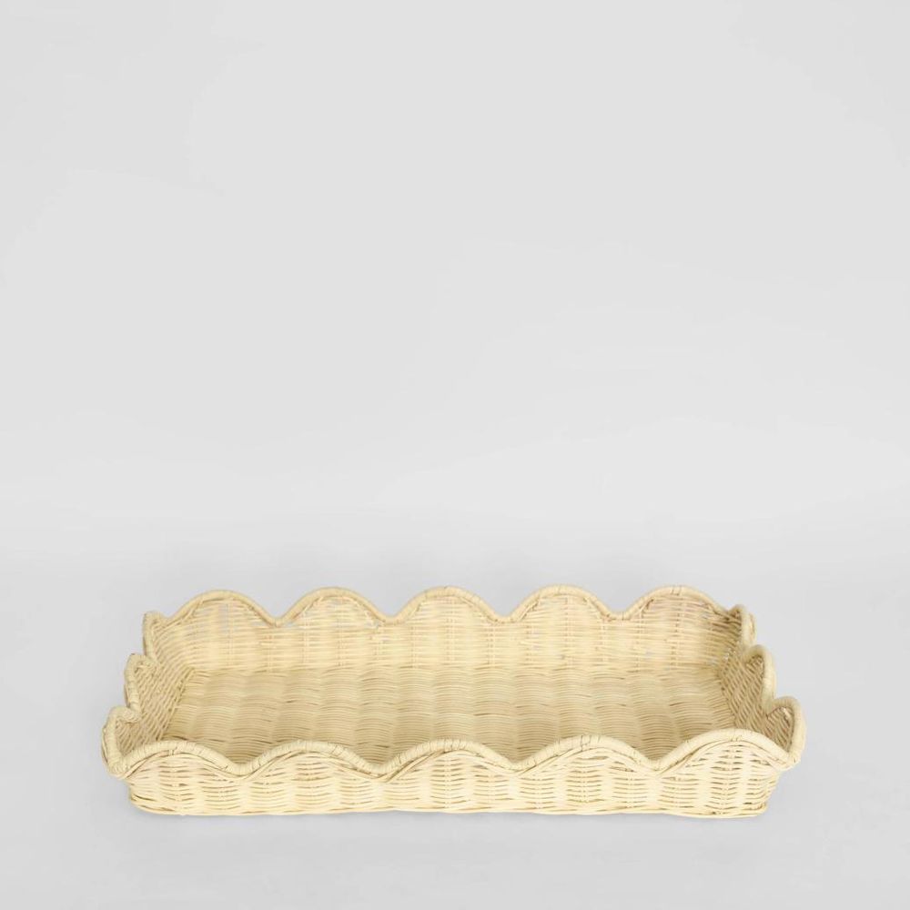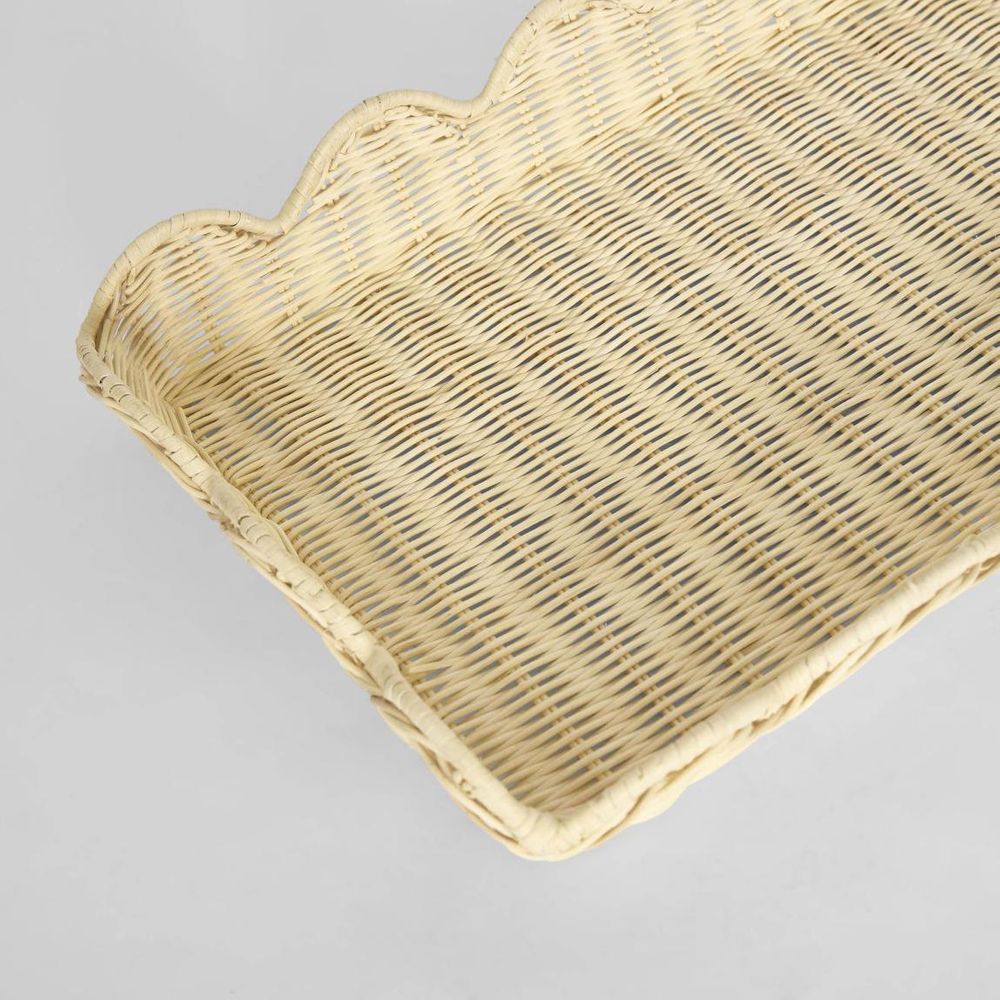 Entertain in style with our Belle rattan tray. Delight your guests with our lovingly hand woven wicker with scallop-edged detail. Serve your favourite drinks & nibbles or use it to store your keys, wallet or phones. Not suitable for Outdoor use. Please note: Rattan is not designed for full outdoor use. If placed outdoors or even in covered outdoor areas, it may weather, fade, or change over time due to exposure to sunlight and moisture. We recommend indoor use or placing it in well-protected areas.