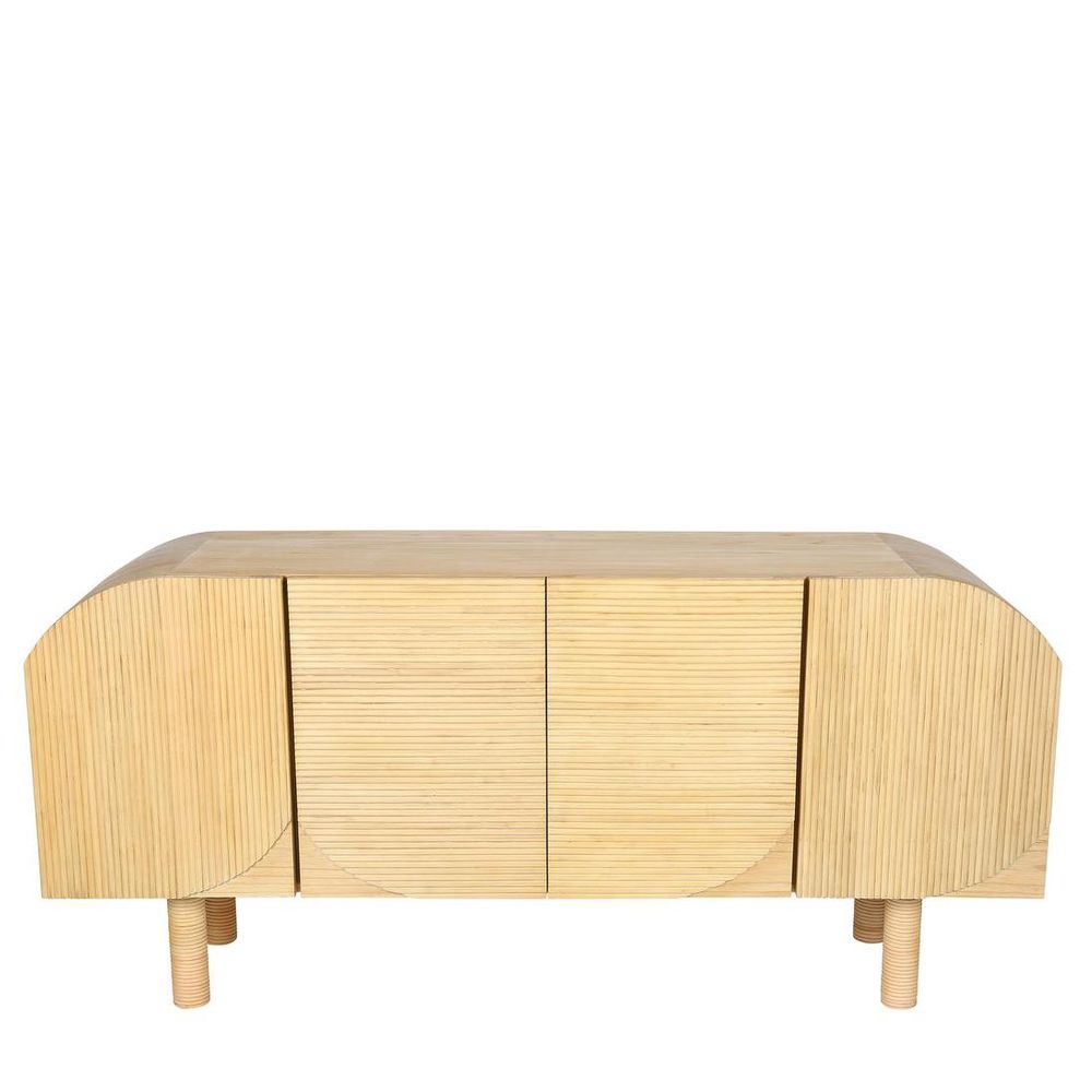 Our scandinavian inspired Casa Buffet is a unique piece functioning as a serving station and dinnerware storage for your diningroom or to keep your entryway organised. The curved sections of the buffet create a beautiful form, which is repeated in the pattern of the reed rattan overlay doors. The sleek design line is enhanced by the absence of protuding handles. This solid wood cabinet features four hinged solid wood doors, with push to open mechanism, and a solid wood shelf within. The organic beauty and the delicate texture is enhanced by the smooth hand wax finish, bringing out the honey grain of the timber. ADDITIONAL INFORMATION Sungkai is a sustainable plantation timber native to Indonesia used extensively in furniture making due to its inherent strength. The elegant grain and natural light tone makes it perfect for the contemporary coastal designs in the MRD Home range. Hand waxed to retain the natural timber colour results in an elegant Matte texture. CARE INSTRUCTIONS Like all natural timbers Sungkai furniture should be kept out of direct sunshine for extended periods of time. Do not expose the surface to liquids or excessive moisture.Wipe with a damp cloth to clean.