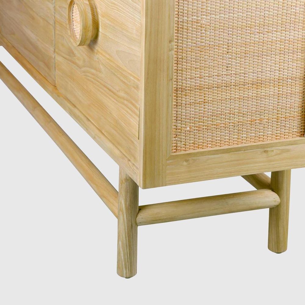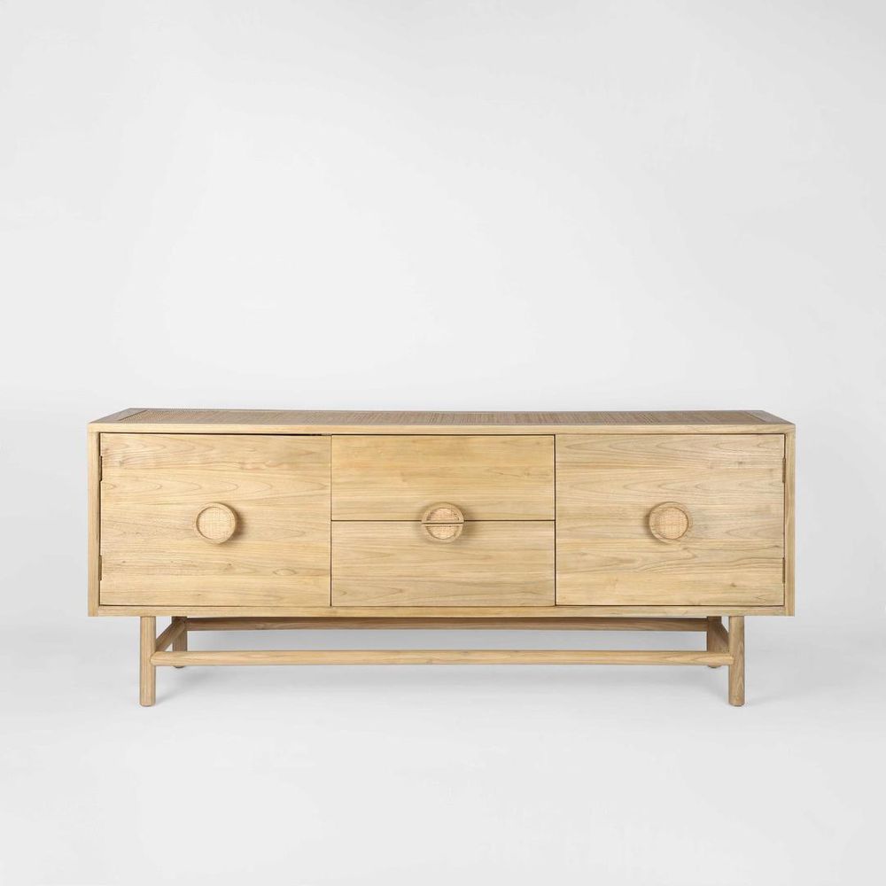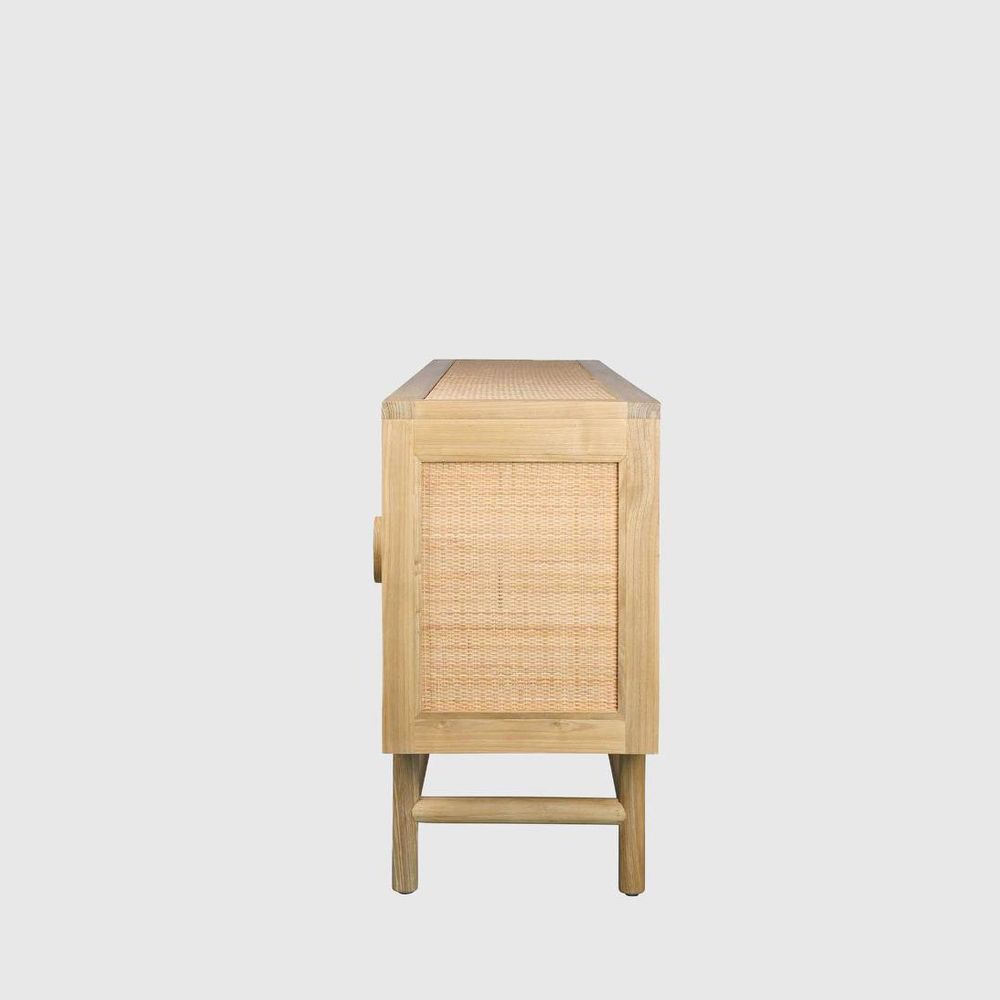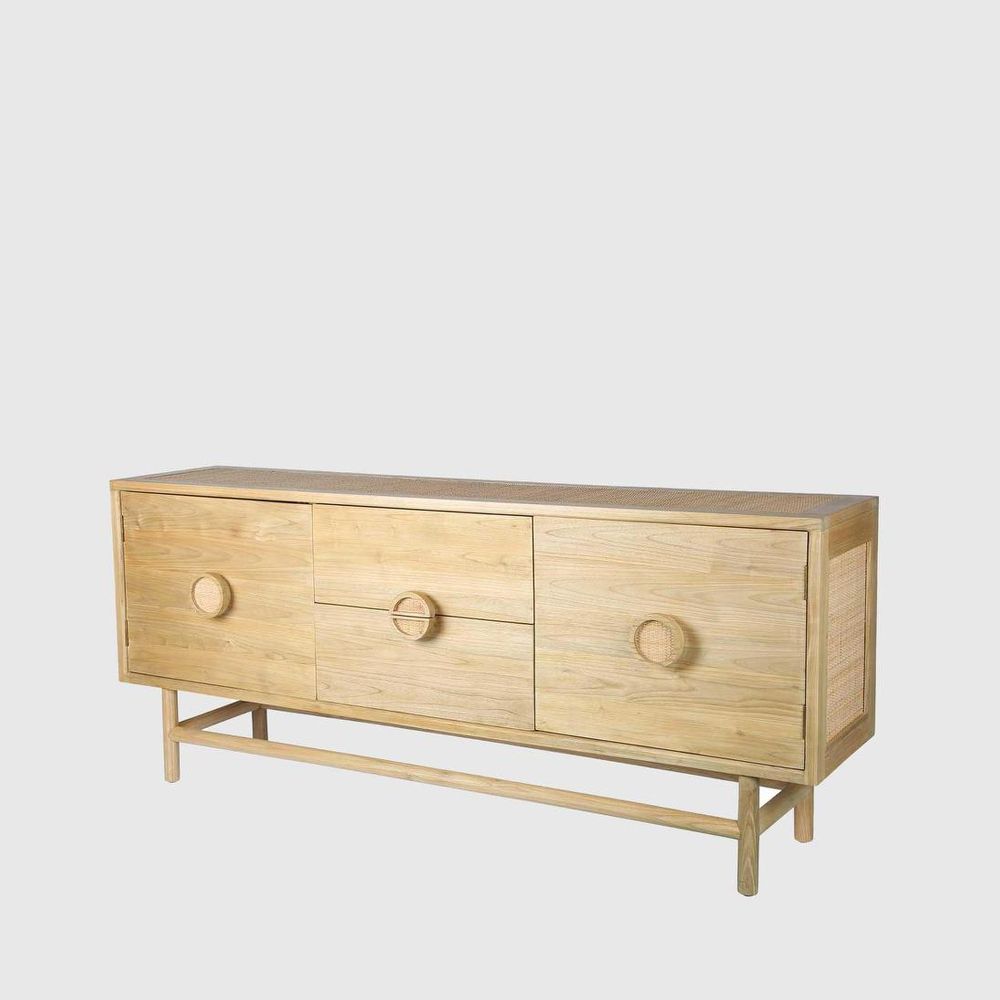 Rondo mixes solid hardwood with woven rattan sides and top, rattan insert handles tie the whole thing beautifully together. 1800 L x 400 D x 750mm H solid hardwood with woven rattan inserts in side, top & handles 2 cupboards, 2 draws