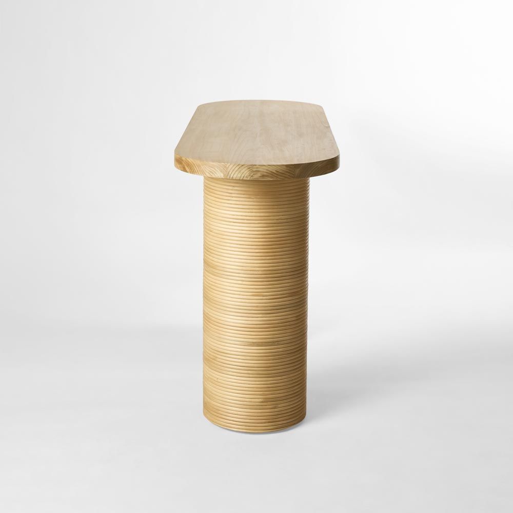 Create a contemporary space that's as eye-catching as it is functional with our Letitia Console Table in Natural. The table's long cylindrical legs are wrapped in cane rattan, adding unique character to the piece. They beautifully contrast with the smooth solid wood top featuring classically rounded ends. Hand-painted in a charming natural color, this table exudes subtle sophistication, making it an ideal addition to your entranceway or living room space.