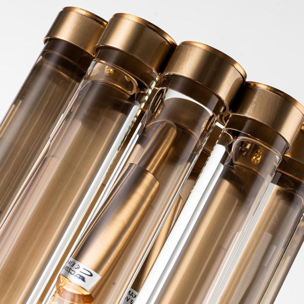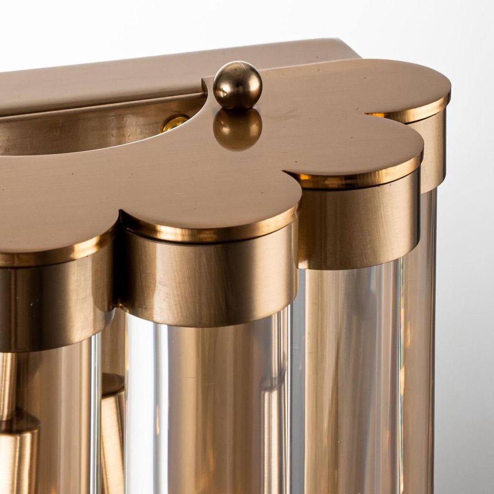 Let your walls speak volumes with our Medium Kobe Wall Light. Featuring six vertical glass rods gracefully arranged in a semicircle and supported by a brass-finished iron base, this luminary masterpiece adds a touch of sophistication to any space. Whether adorning your bathroom vanity mirror, gracing your bedside tables, or casting a warm glow in your living room, let the Kobe Wall Light illuminate your world with unparalleled charm and allure.