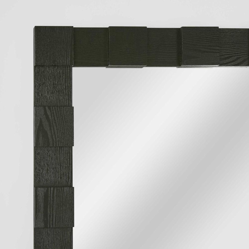 Crafted with an oak profile and meticulously hand-laid details, our Monument Wall Mirror in Black isn't just a reflection of your style, it's a statement piece that commands attention in your modern Montauk sanctuary. Whether it graces the walls of your living room, bedroom, or hallway, its sleek presence adds depth and character to any interior. With no assembly required and simple maintenance, just a quick dust with a soft cloth, keeping this magnificent mirror looking polished has never been easier.