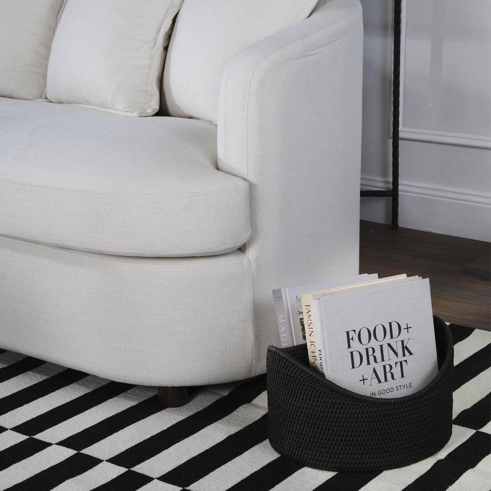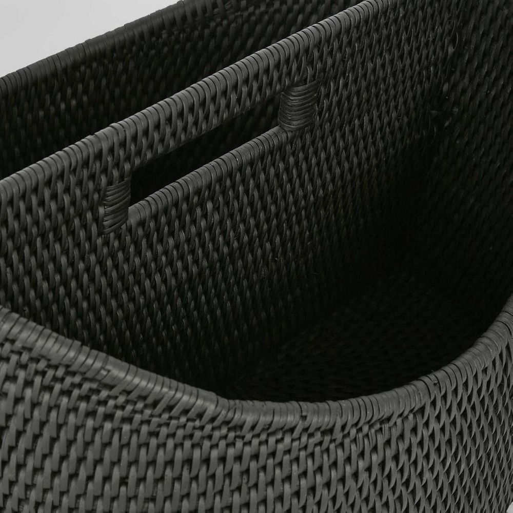 Declutter your space with our Paume Rattan Magazine Holder in Black, a stylish and functional addition to your timeless home decor. Handcrafted by skilled artisans in Myanmar, this high-quality rattan piece features a unique partition in the middle and low hanging sides, allowing you to elegantly display and access your favorite magazines. Embrace both form and function, adding a touch of artisanal charm to your living room or study, while enjoying the durability that stands the test of time. Easy to clean with just a soft brush and warm soapy water, this magazine holder effortlessly combines practicality with sophistication. Please note: Rattan is not designed for full outdoor use. If placed outdoors or even in covered outdoor areas, it may weather, fade, or change over time due to exposure to sunlight and moisture. We recommend indoor use or placing it in well-protected areas.