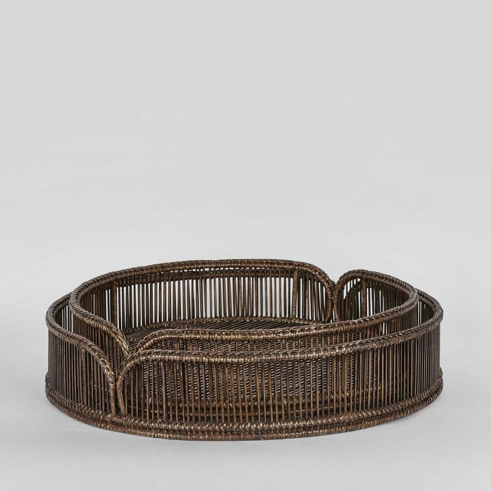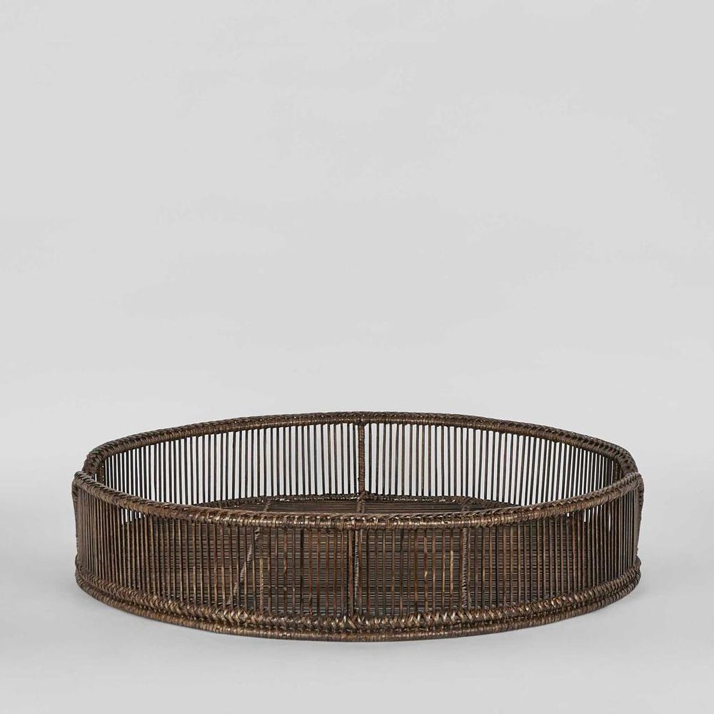 Enhance your home decor with our Luca Rattan Round Trays in Antique Brown. Meticulously crafted by skilled artisans in Myanmar, these high-quality rattan trays boast enduring quality. Whether you're organizing essentials on your coffee table, serving drinks with flair, or adding a touch of sophistication to your bedroom, these trays are versatile, easy to clean, and a timeless addition to your living space. Elevate your surroundings with the craftsmanship and chic design of Luca Rattan Round Trays, making a statement in every corner. Please note: Rattan is not designed for full outdoor use. If placed outdoors or even in covered outdoor areas, it may weather, fade, or change over time due to exposure to sunlight and moisture. We recommend indoor use or placing it in well-protected areas. A liner is recommended, not recommended for direct food contact.