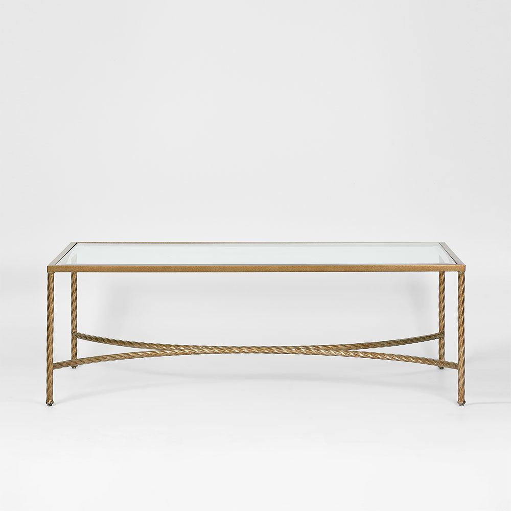 Elevate your living room to a realm of Hollywood glamour with our Palais Rectangular Coffee Table in Gold, a stunning ode to the opulence of the 1950s Regency era. Crafted with intricate gold rope detailing and a classic rectangular silhouette, this table exudes sophistication and luxury. Perfect for adding a touch of grandeur to your Hamptons-themed decor, it serves as both a functional coffee table and a dazzling centerpiece. No assembly required, simply dust with a soft cloth to maintain its radiant allure.