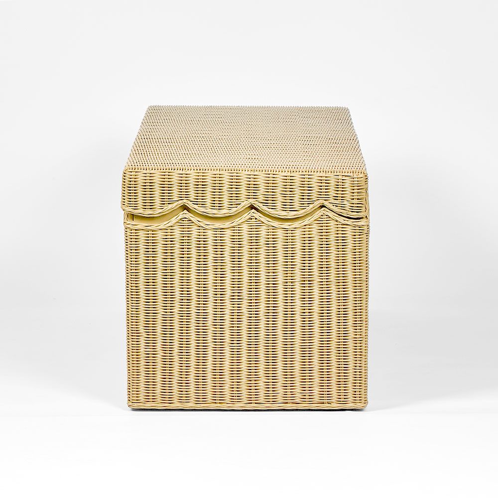 Unlock the secrets of chic organization with our Belle Rattan Storage Bench in natural, a coastal-inspired marvel that adds a pop of personality to your space. Crafted from wood with a charming wicker weave and adorned with a scalloped lid, it offers both storage and seating in one sophisticated piece. Perfect for adding a touch of island flair to your entryway, bedroom, or living room, let this natural beauty breathe new life into your decor. Not suitable for Outdoor use. Please note: Rattan is not designed for full outdoor use. If placed outdoors or even in covered outdoor areas, it may weather, fade, or change over time due to exposure to sunlight and moisture. We recommend indoor use or placing it in well-protected areas.