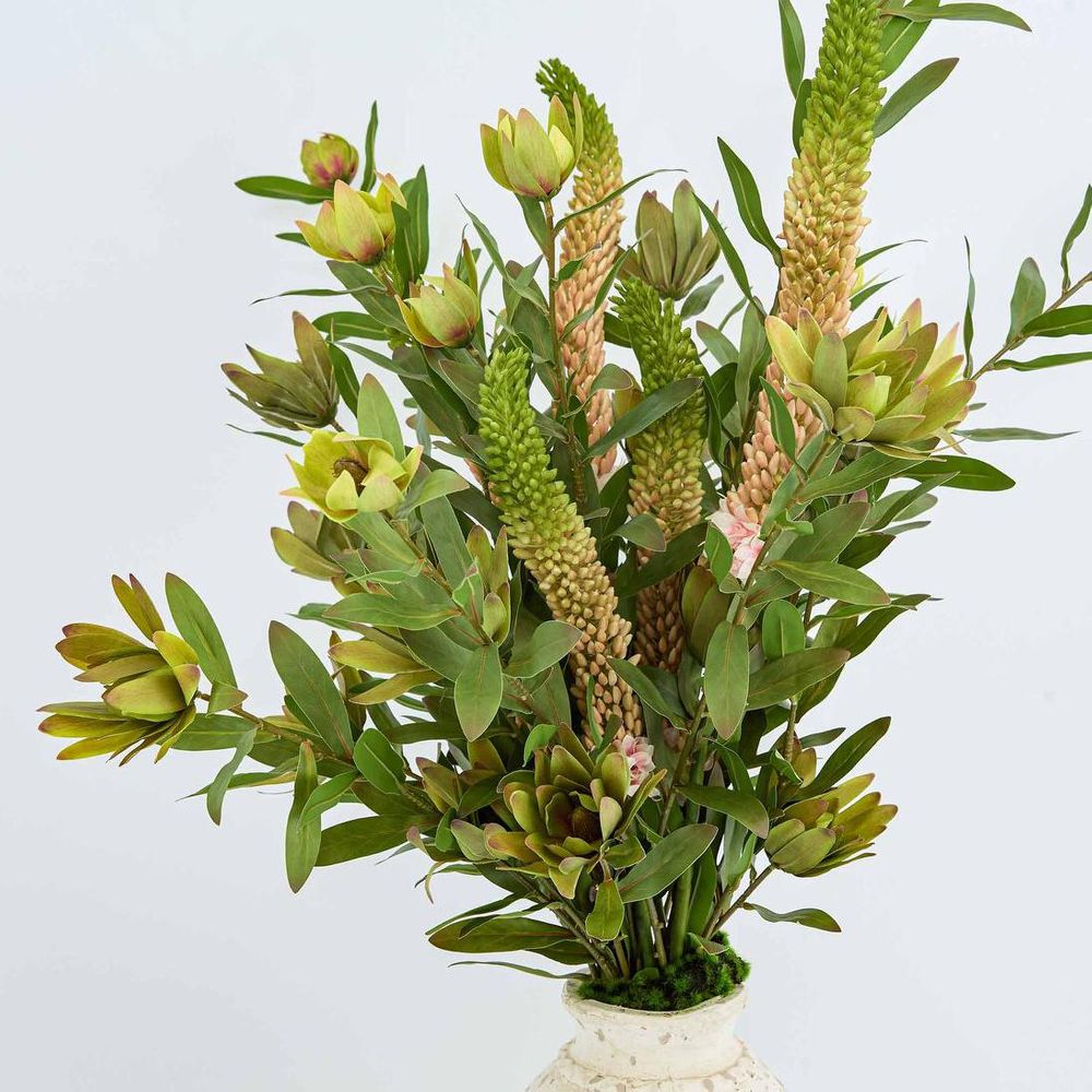 Bask in perpetual sunshine with our faux Leucadendron Spray. Utilizing innovative technology, these blooms radiate soft yellow hues and lifelike textures, minus the woes of wilting or scent deterioration. Their hypoallergenic composition and minimal upkeep needs make them an ideal option for enlivening any area sans sneezes or hassle. A quick dusting with a static feather duster maintains their freshness, ensuring they remain a budget-friendly and effortless enhancement to your floral compositions.