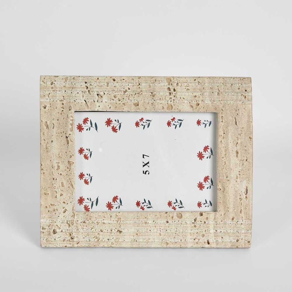 Frame your memories in unparalleled style with our 5 x 7 Trey Travetine Photo Frame. a sandstone masterpiece handcrafted by skilled artisans in India. This elegant frame effortlessly merges traditional craftsmanship with a modern flair, becoming the perfect accent for any room in your home. Showcase your precious moments in style, whether it's on your bedside table, living room mantel, or office desk. As this is a natural material, each piece will have its own unique characteristics, making every item one of a kind.