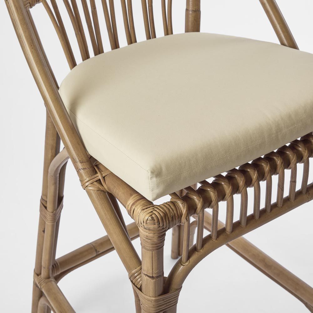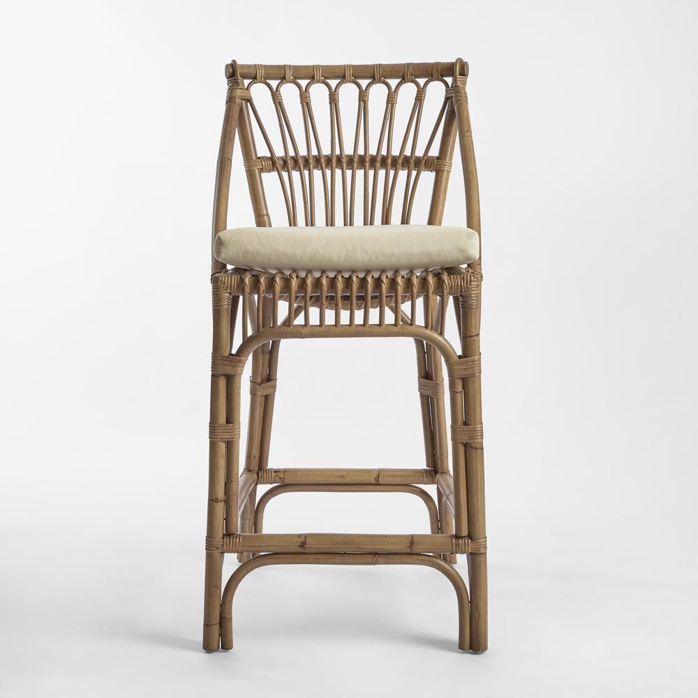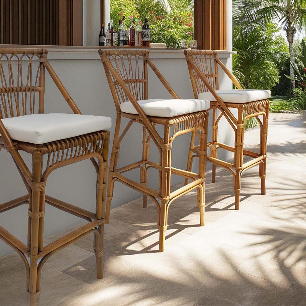 Cayman Rattan Hamptons Bar stool Natural W/Cream Cushions & Footrest