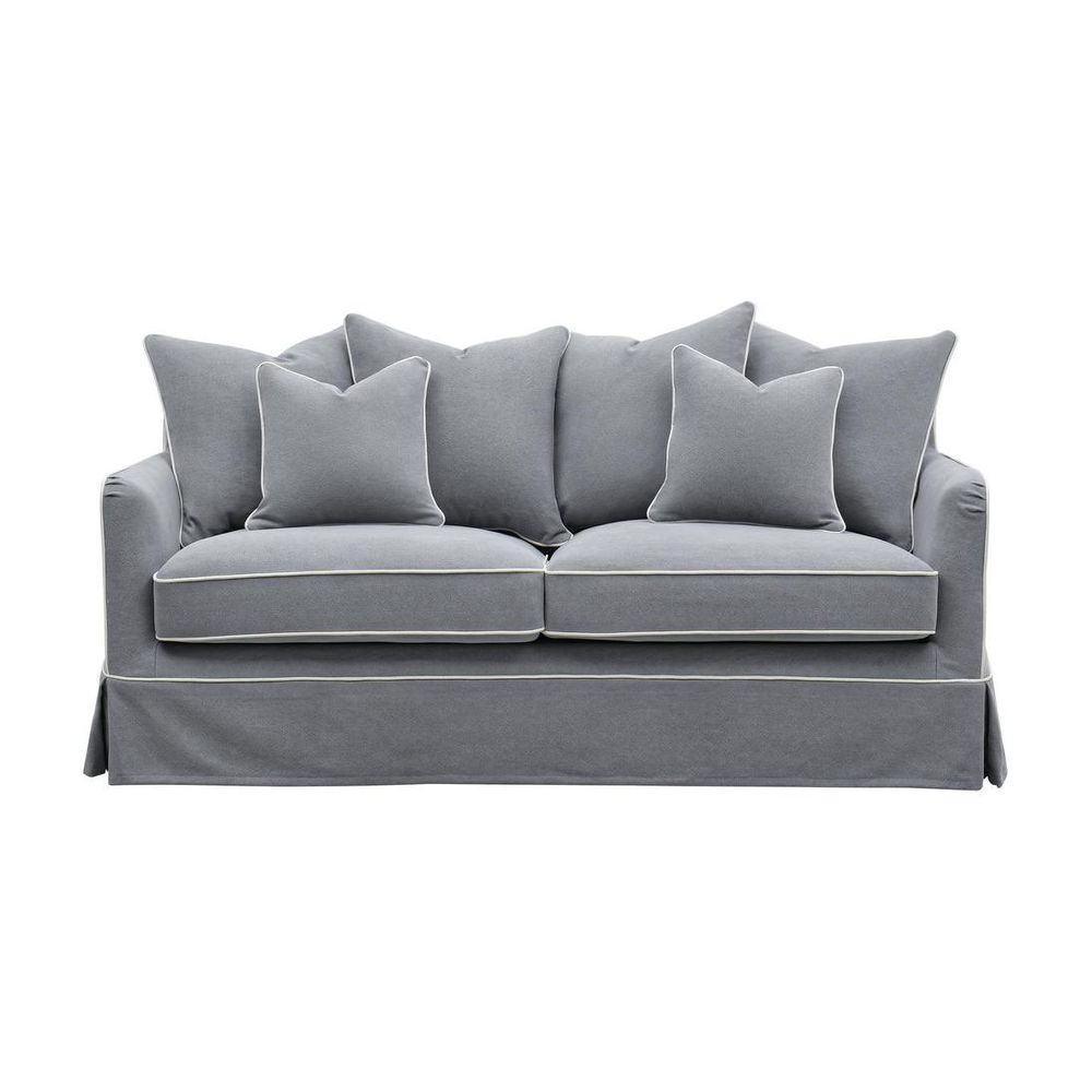 Slip Cover Only - Noosa Hamptons 2.5 Seat Sofa Grey W/White Piping