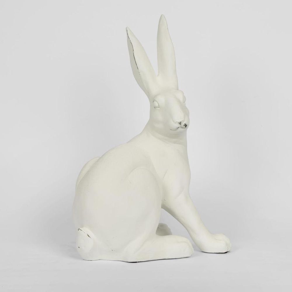 Add a touch of sophisticated playfulness to your outdoor haven with our Large Henry Hare Sitting in white. Crafted from resin, this decorative piece effortlessly blends into any garden style with its chic rustic matte white finish. Place it side by side or scattered throughout the garden with the rest of its adorable family of Hares. Each piece is rustically unique, boasting slight variations that only enhance the enchanting allure of the collection.