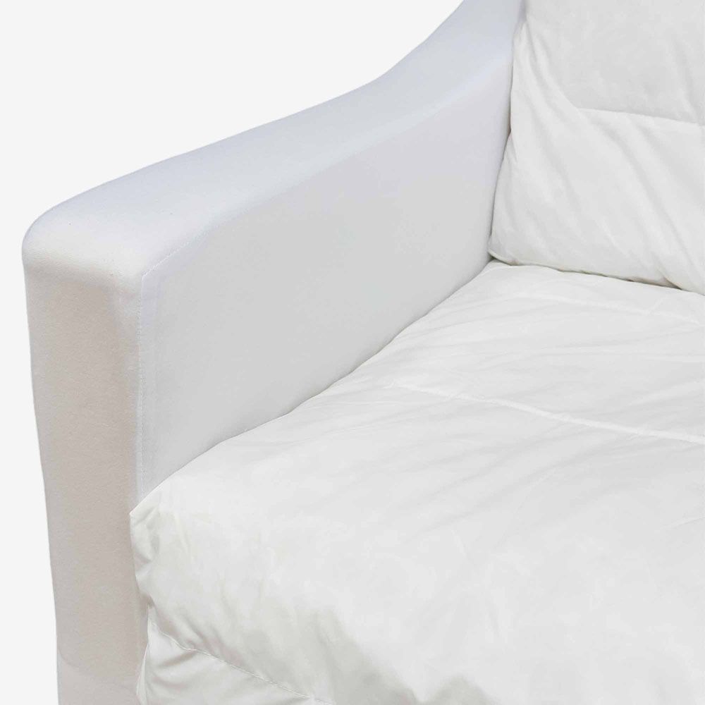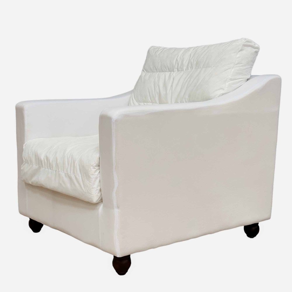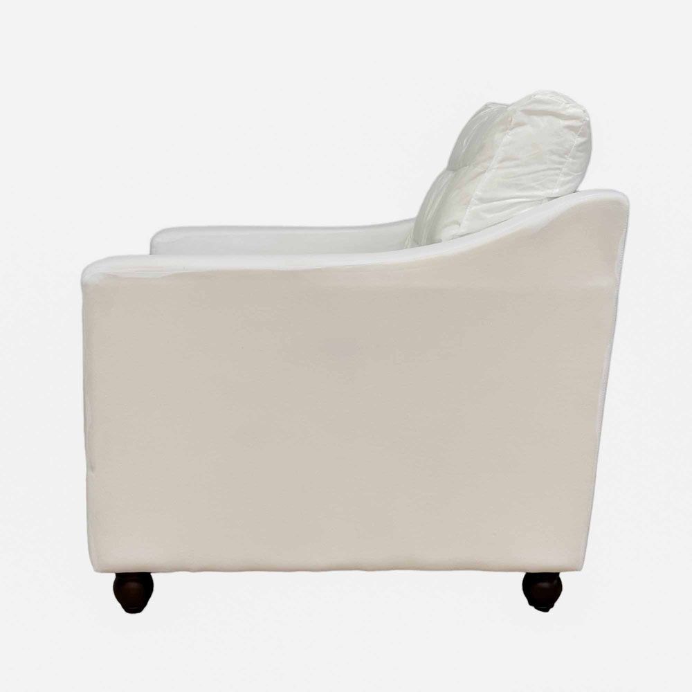 Get the perfect canvass that will effortlessly elevate your lounge space with our Clovelly Naked Arcmchair Base. Crafted for versatility, this base allows you to mix and match with various fabrics from our Clovelly Armchair Slip Cover collection, ensuring a personalized touch to suit your style. Compact yet cozy, this piece is tailored for small spaces and airy aesthetics, promising a lavish lounging experience right in the comfort of your own home. The cushions filled with 30% Duck feather and 70% EPE foam. The high-density foam has been tested to meet Certi-PUR requirements, complies with VOC testing under the EU RoHS Directive (EU) 2015/863, and can meet the CA117 flammability standard. The product and all its materials are free from PFAS, PFOS, and PFTE. Formaldehyde testing has been completed for all wood and glue components. All fabrics used in the product are OEKO-TEX® Standard 100 compliant.
