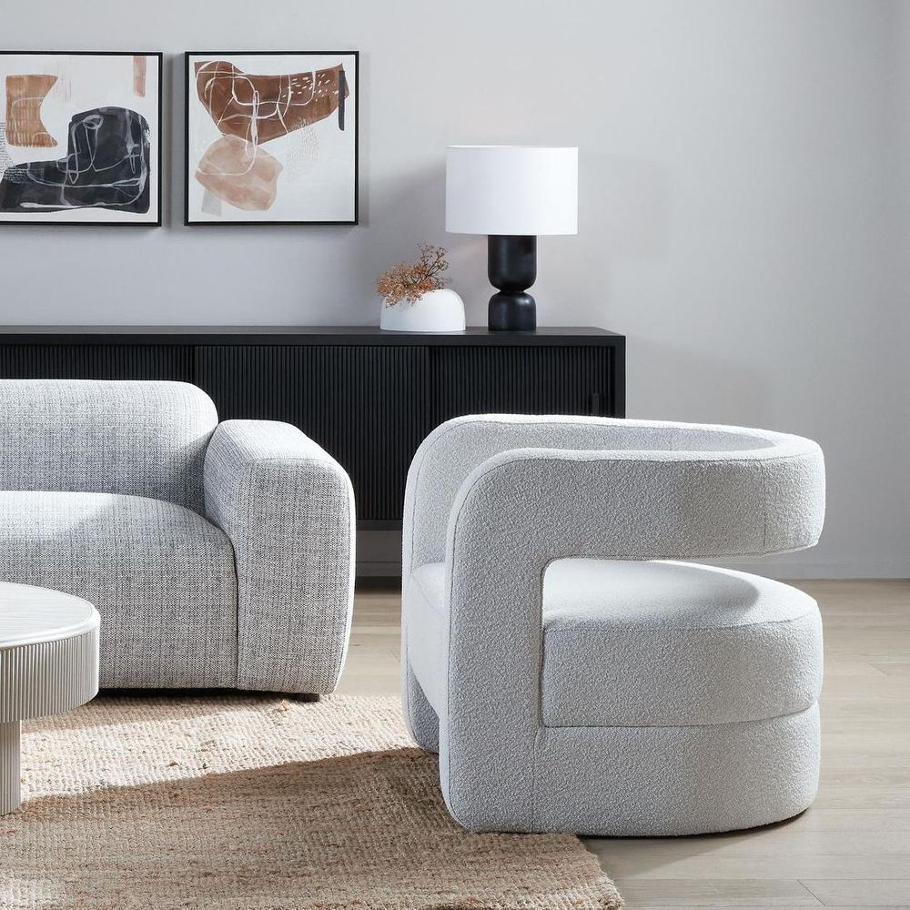 Introducing the curvy Cleo, a true modern masterpiece that embodies contemporary design. Its embracing circular shape features an embracing backrest that scoops around and seamlessly transitions into enclosed curved armrests and leg supports. Crafted with a sturdy frame and filled with high-density foam, this generously padded chair provides optimal support and comfort, making it ideal for that cosy corner. The Cleo Chairs available in a fresh Vanilla Boucle cover or the sumptuous cinnamon large scale corduroy. Fabric is 100% polyester and is easy to clean. ADDITIONAL INFORMATION • Handcrafted with care using kiln-dried solid and engineered timber for added durability. • Generously padded with high-density foam with fibre overlay offering comfort and resilience. • The depth of seat is 67cm. • The overall height is 72cm. • The seat comfort is medium firmness.