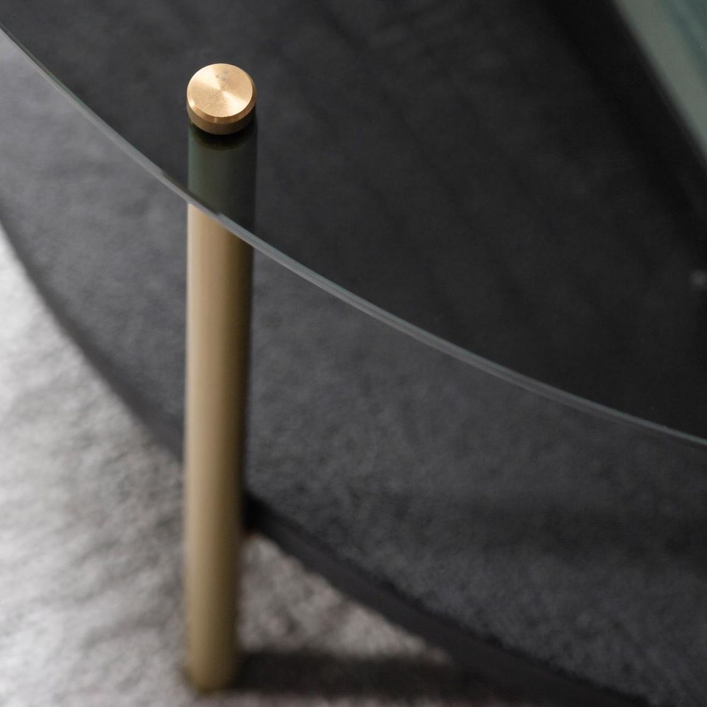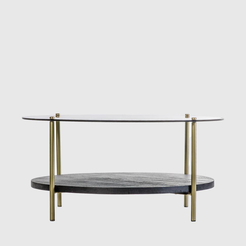 Add a touch of chic contemporary style to a room with the Herne Coffee table. The metal legs have a glamourous gold finish which looks stunning with the black glass top and black wooden shelf. A matching side table is available, and the two look fantastic used together.
