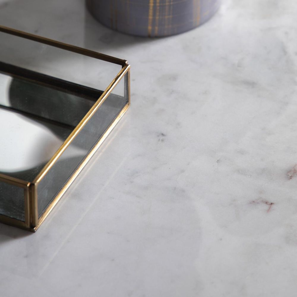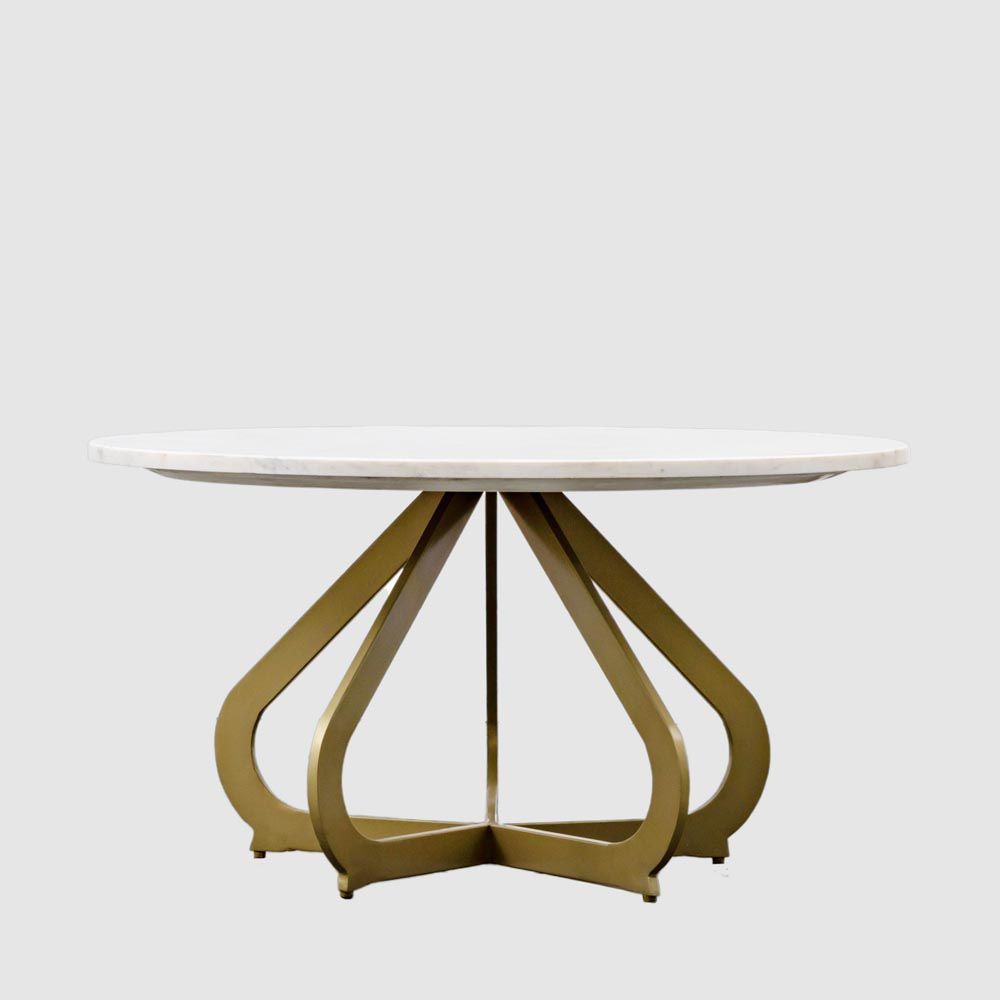 Add a touch of glamour to a room with this stunning coffee table. The stylish, contemporary design features a white marble top paired with an eye-catching metal base with a brushed brass finish. This is also offered with a matt black finish base.
