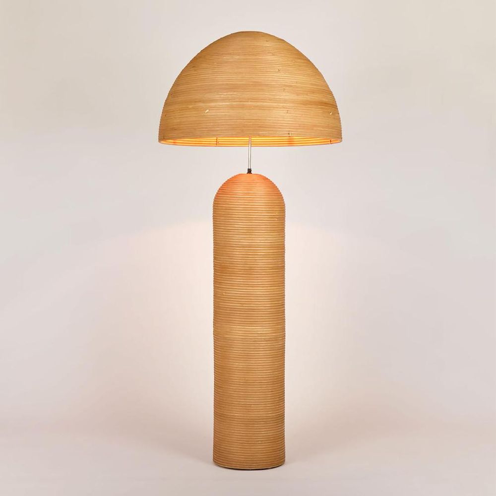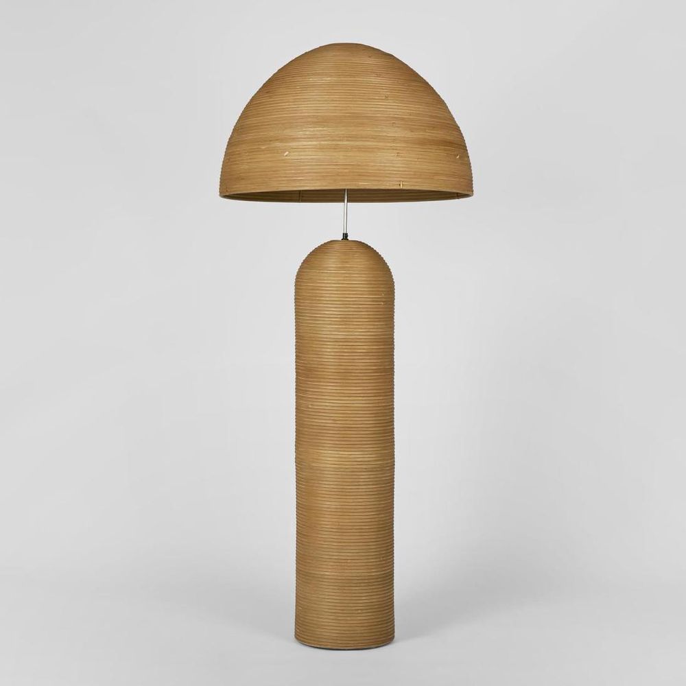 These fun lamps, striking in scale, shape and material will become a statement piece in any space.Taking classical forms and re-inventing them with the beauty of natural rattan.Featuring an adjustable neck- the shade height can be adjusted within an 18cm range to desired look or level of light cast. Maximum Wattage 40W Operated with foot switch. Cord length 1.8m with switch located 40cm from base. Also available as a table lamp and bedside lamp.