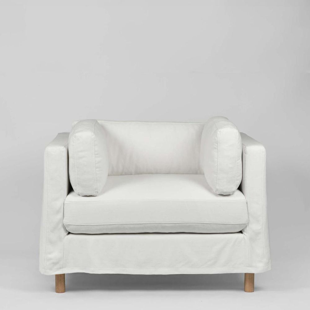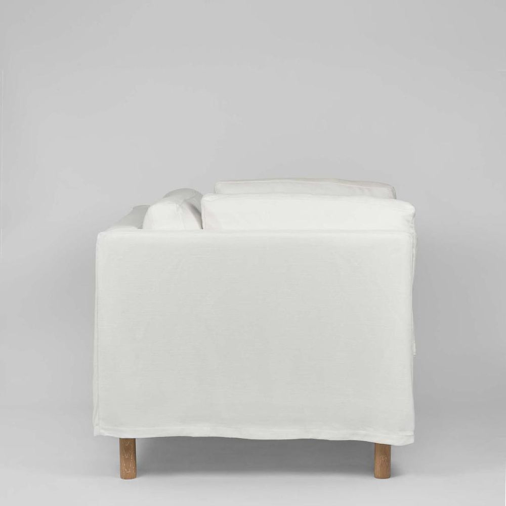 Pamona has loose covers making it chic, effortless & not too serious, we finished the covers high enough to see the legs and to keep the lines sleek not shabby chic. W 1050 x D 890 Dx H 740 mm Covershave been pre-washed to make them suitable for cold machine washing when required.Line dry Two arm cushions are included. Natural oak legs. fully removable covers are 60% cotton, 40% linen , martindale 30,000 rubs. The Pamona 4str sofa comes in 2base sections with easy connectors that fix them together.Cover Sold separately. 2.5str and 4str also available in the Pamona range.