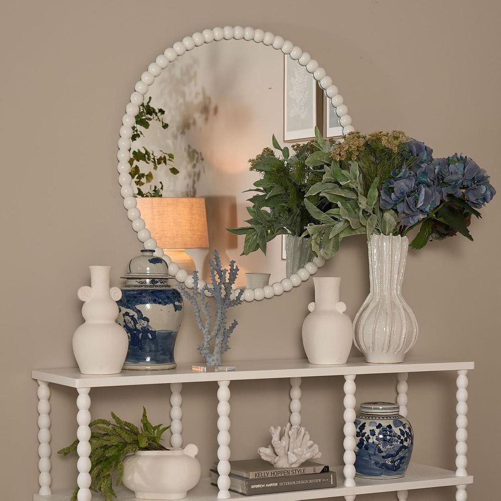 Crafted with a classic white bead oak wood frame, our Bobbin Round Mirror serves as a statement piece, adding a touch of Hamptons charm to any space it graces. Whether hung in your entryway, bedroom, or living room, this mirror not only enhances the aesthetic appeal but also creates an illusion of space, making it perfect for rooms of any size. With no assembly required and maintenance as simple as dusting with a soft cloth, it's the perfect addition to elevate your Hamptons-themed decor.