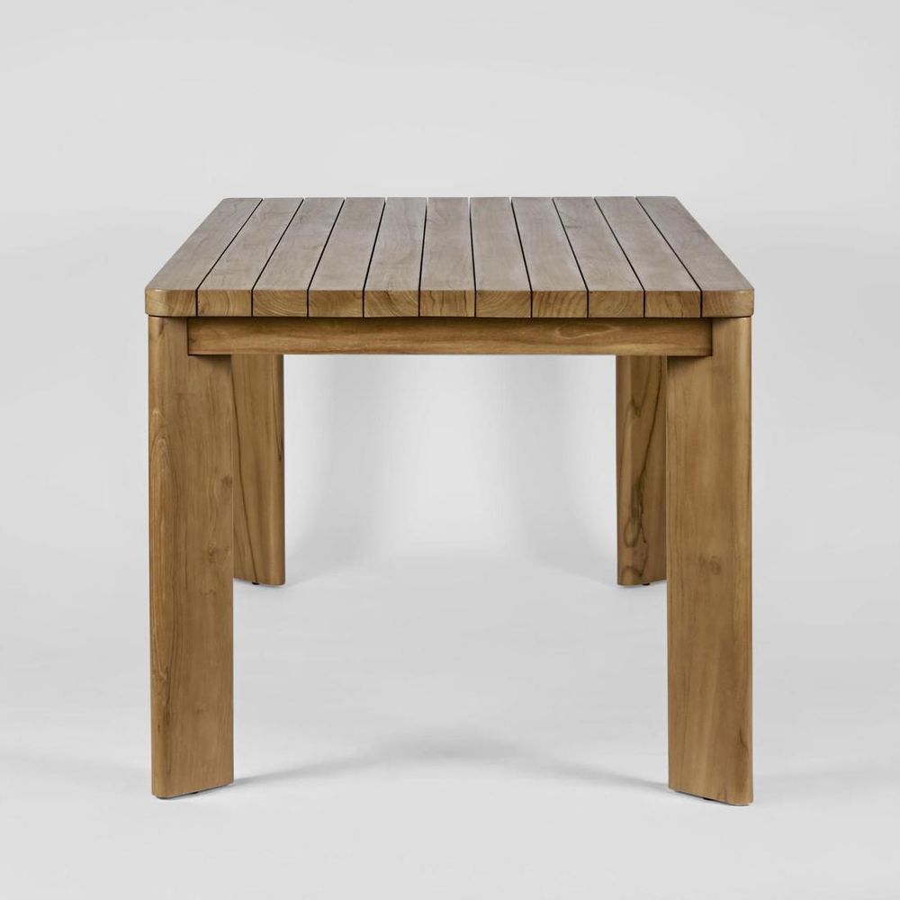 Introducing the Wategos Teak Indoor/Outdoor Dining Table, a beautifully crafted piece that combines classic design with premium materials. Made from solid teak wood and featuring a slatted top, this dining table is the perfect addition to enhance both indoor and outdoor spaces. Key Features: Solid Teak Wood Construction: The Wategos Dining Table is constructed from high-quality, solid teak wood, known for its exceptional durability and natural beauty. Teak wood is highly resistant to weather, decay, and insects, making it an ideal choice for outdoor furniture. Slatted Top Design: The table features a stylish slatted top that not only adds visual interest but also allows for easy drainage when used outdoors. The slatted design enhances airflow and prevents water from pooling, ensuring longevity and ease of maintenance. Classic Design: With its timeless design, the Wategos Dining Table brings a touch of elegance and sophistication to any setting. The classic lines and natural wood finish make it a versatile piece that complements a variety of décor styles, from contemporary to traditional. Versatile Use: Perfect for both indoor and outdoor settings, this dining table is ideal for patios, gardens, dining rooms, and sunrooms. Its versatile design allows it to seamlessly transition between different environments, providing a stylish and functional dining space. Durable and Sturdy: Built to withstand the rigors of everyday use, the Wategos Dining Table is sturdy and robust. The solid teak wood construction provides a strong and stable foundation, ensuring long-term durability and reliability. Easy Maintenance: The teak wood surface can be easily cleaned with mild soap and water to keep it looking fresh and new. Over time, the wood will develop a beautiful, natural patina that adds to its charm. Eco-Friendly Material: Teak wood is a sustainable choice, harvested from responsibly managed plantations. By choosing the Wategos Dining Table, you are supporting eco-friendly practices and sustainable forestry. Furniture left on damp ground or in pooled water will reduce the life of the frame.