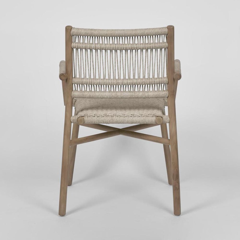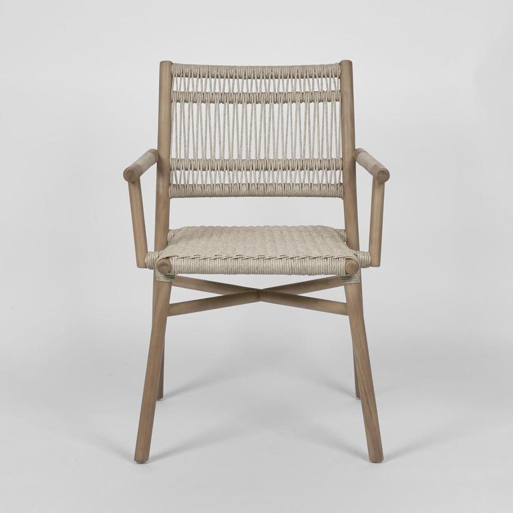Introducing the Wategos Teak Indoor/Outdoor Dining Armchair, a perfect blend of original design, superior craftsmanship, and durable materials. This dining chair features a solid teak wood frame and handwoven all-weather synthetic material, making it a stylish and reliable addition to any dining space. Key Features: Original Design: The Wategos Dining Chair boasts a unique and original design that adds a touch of sophistication and elegance to any setting. Its contemporary lines and refined aesthetics make it a standout piece in both indoor and outdoor environments. Solid Teak Wood Frame: Crafted from high-quality, solid teak wood, this dining chair offers exceptional durability and natural beauty. Teak wood is renowned for its resistance to weather, decay, and insects, ensuring long-lasting performance in any setting. Handwoven All-Weather Synthetic Material: The chair features a seat and backrest handwoven from all-weather synthetic material, providing the look and feel of natural fibers with enhanced durability. This material is designed to withstand the elements, making it ideal for outdoor use while retaining its beauty and comfort. Comfortable Seating: Designed with both style and comfort in mind, the Wategos Dining Chair offers a supportive and comfortable seating experience. The ergonomic design and handwoven material provide a cozy and inviting feel, perfect for long meals and gatherings. Durable and Sturdy: Built to withstand the rigors of everyday use, the Wategos Dining Chair is sturdy and robust. The combination of solid teak wood and all-weather synthetic material ensures long-term durability and reliability. Easy Maintenance: The Wategos Dining Chair is designed for easy maintenance. The teak wood frame can be cleaned with mild soap and water, while the synthetic material can be wiped down to keep it looking fresh and new. Eco-Friendly Material: Teak wood is a sustainable choice, harvested from responsibly managed plantations. By choosing the Wategos Dining Chair, you are supporting eco-friendly practices and sustainable forestry. Furniture left on damp ground or in pooled water will reduce the life of the frame.