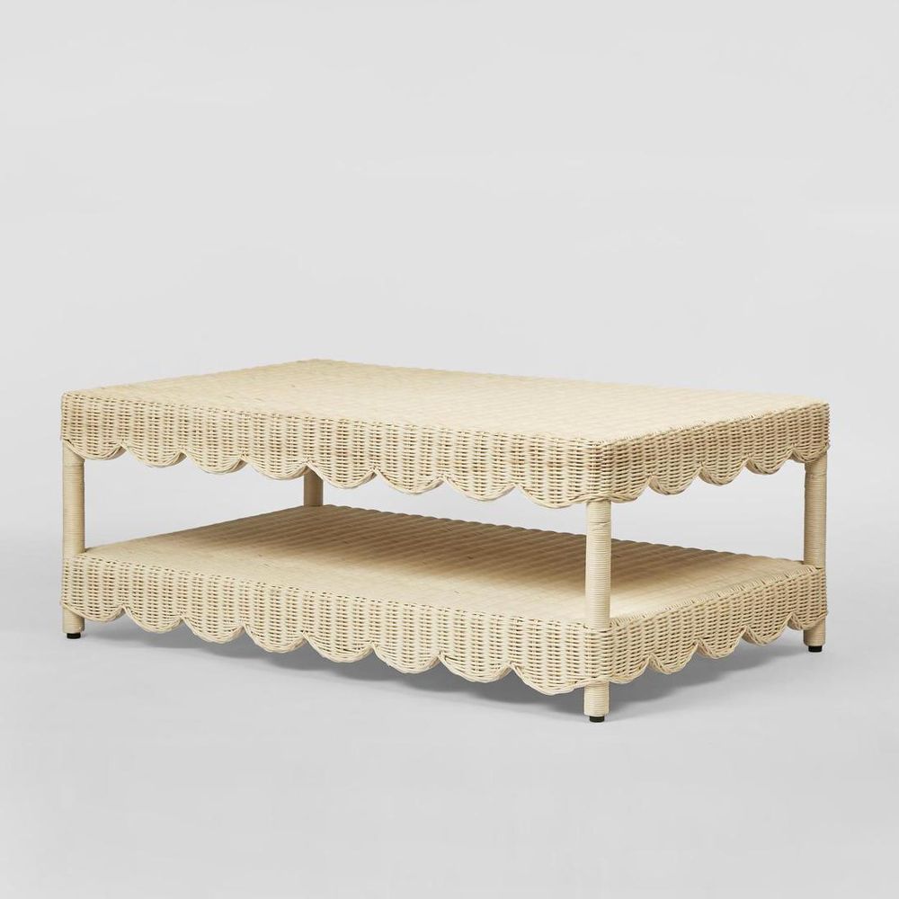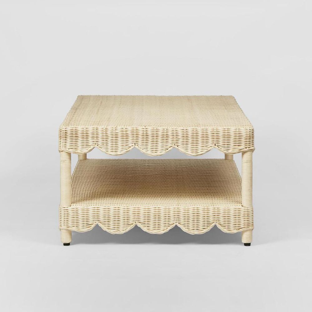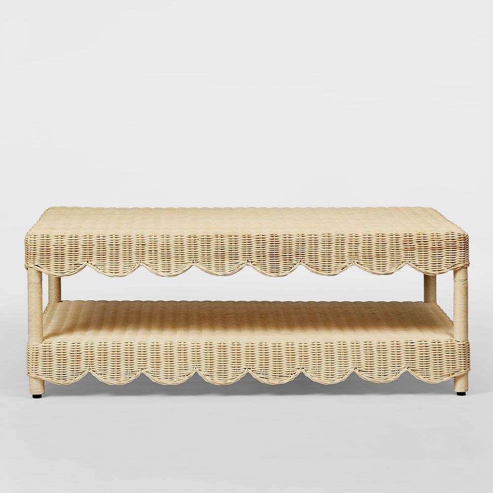 The Belle Rattan Coffee Table is a charming piece characterized by its scallop skirt and intricate wicker weave. It also includes a convenient storage shelf, adding functionality to its stylish design. This table combines aesthetic appeal with practical storage, making it a versatile addition to any living space. Not suitable for Outdoor use. Please note: Rattan is not designed for full outdoor use. If placed outdoors or even in covered outdoor areas, it may weather, fade, or change over time due to exposure to sunlight and moisture. We recommend indoor use or placing it in well-protected areas.